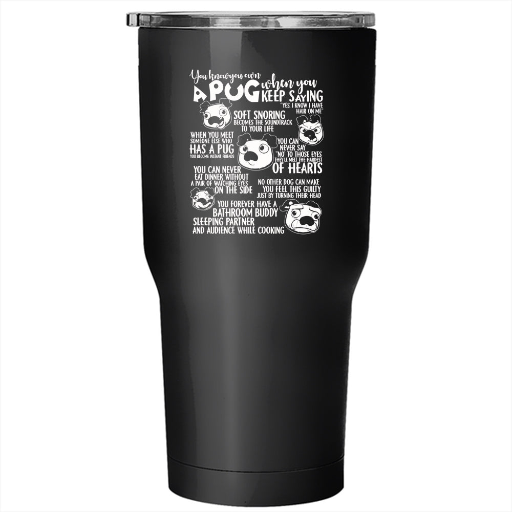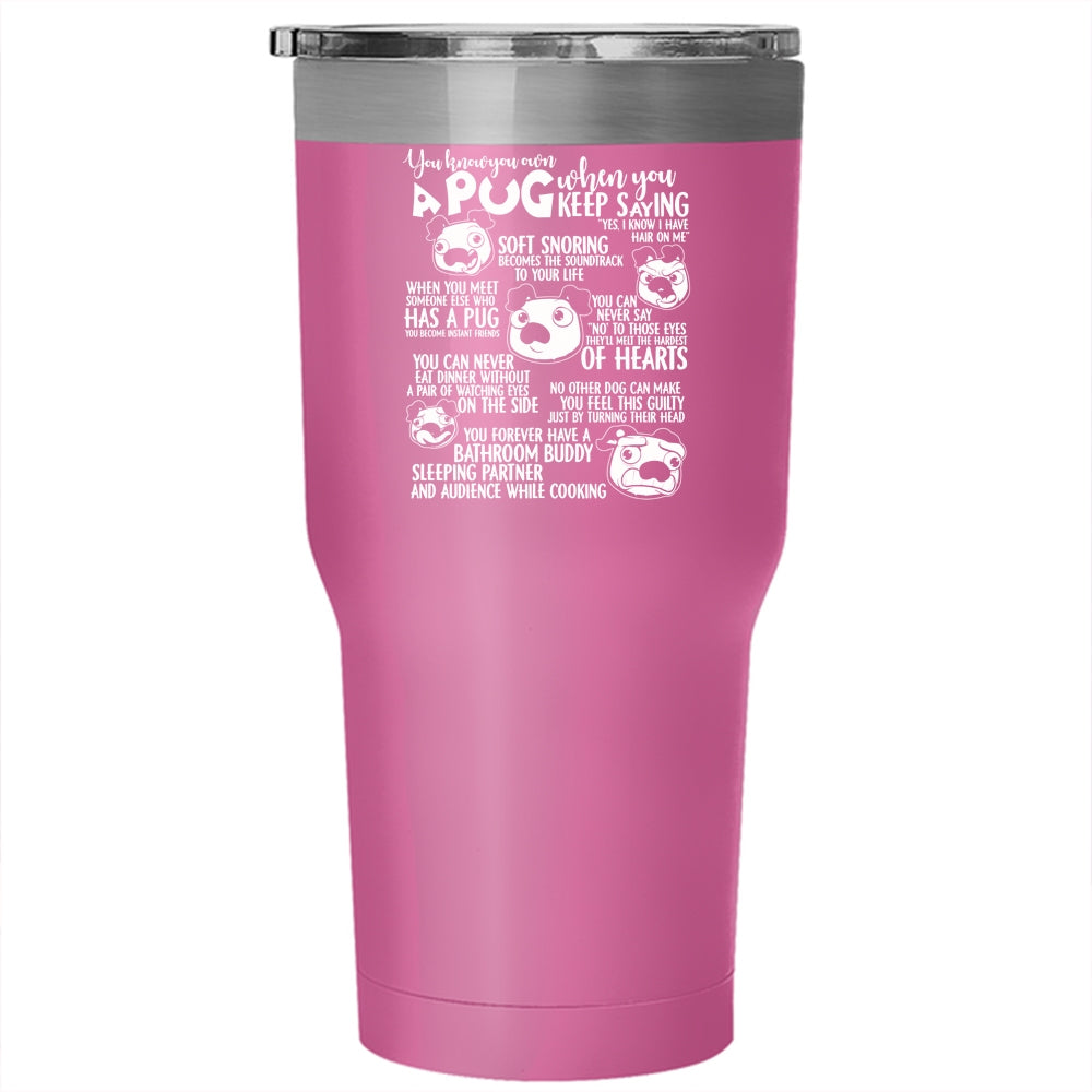 You Know You Own A Pug Tumbler 30 oz Stainless Steel, Cute Gift For Pug Lover Travel Mug