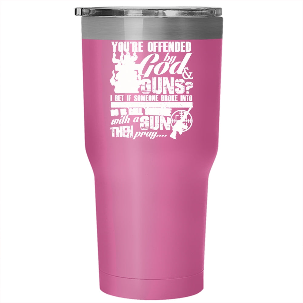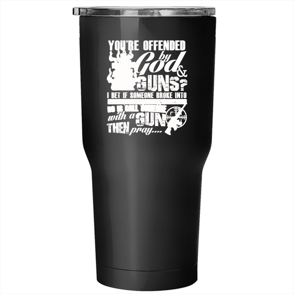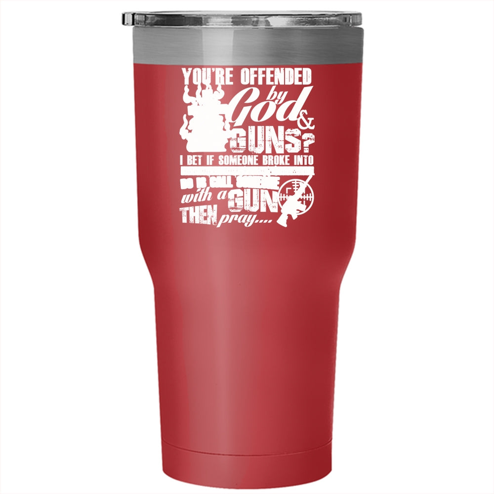 You're Ofended By God And Guns Tumbler 30 oz Stainless Steel, Funny Gunner Travel Mug