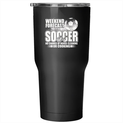 Weekend Forecast Soccer Tumbler 30 oz Stainless Steel, Cute Gift For Soccer Player Travel Mug