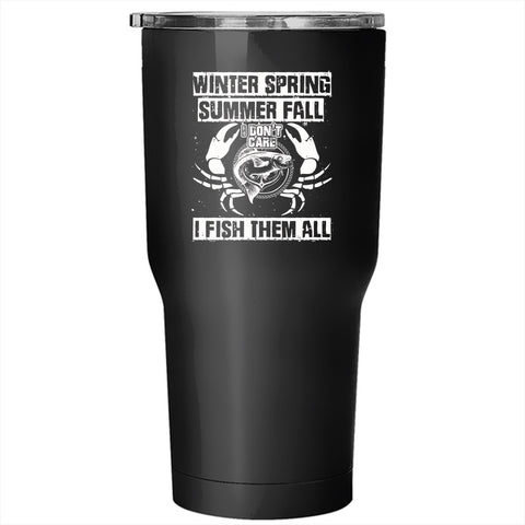 Winter Spring Summer Fall Tumbler 30 oz Stainless Steel, I Fish Them All Travel Mug