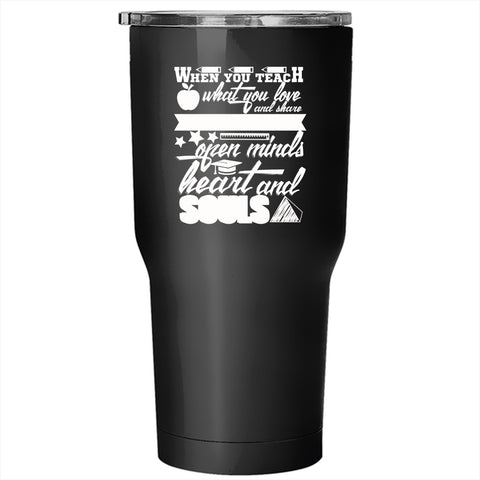 When You Teach What You Love Tumbler 30 oz Stainless Steel, Open Minds Heart And Souls Travel Mug