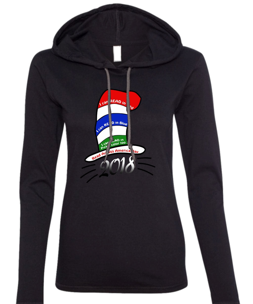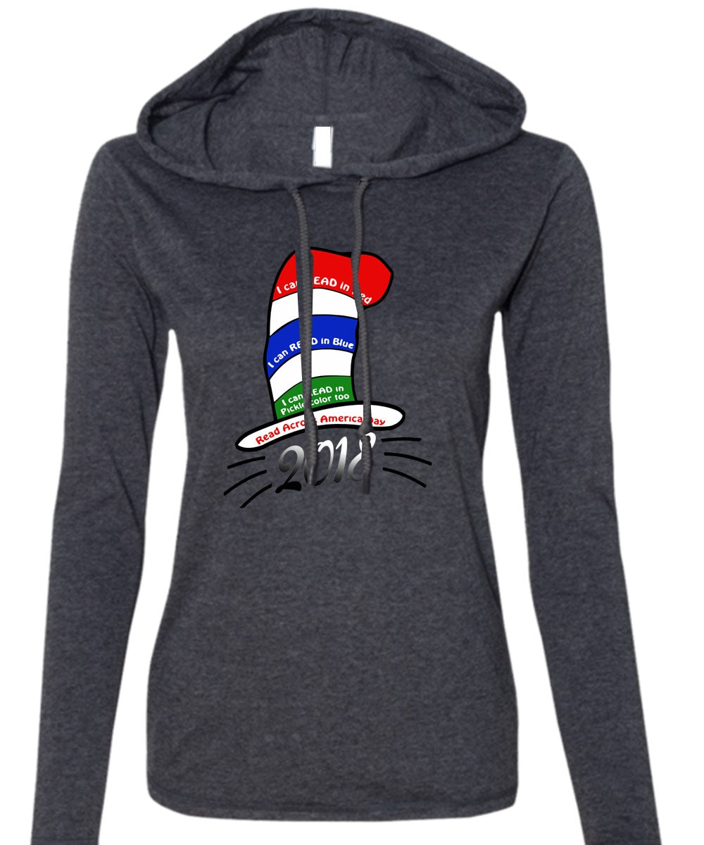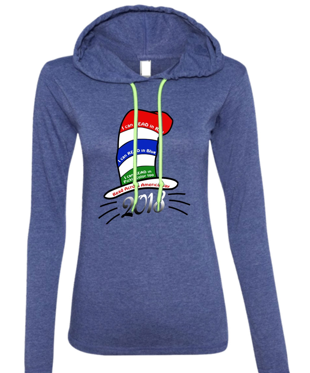 Dr. Seuss T Shirt, I Can Read In Red T Shirt, The Cat in the Hat T Shirt, I Can Read In Blue T Shirt (Anvil Ladies Ringspun Hooded)
