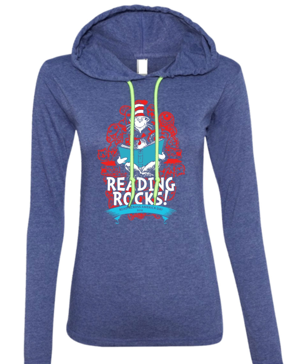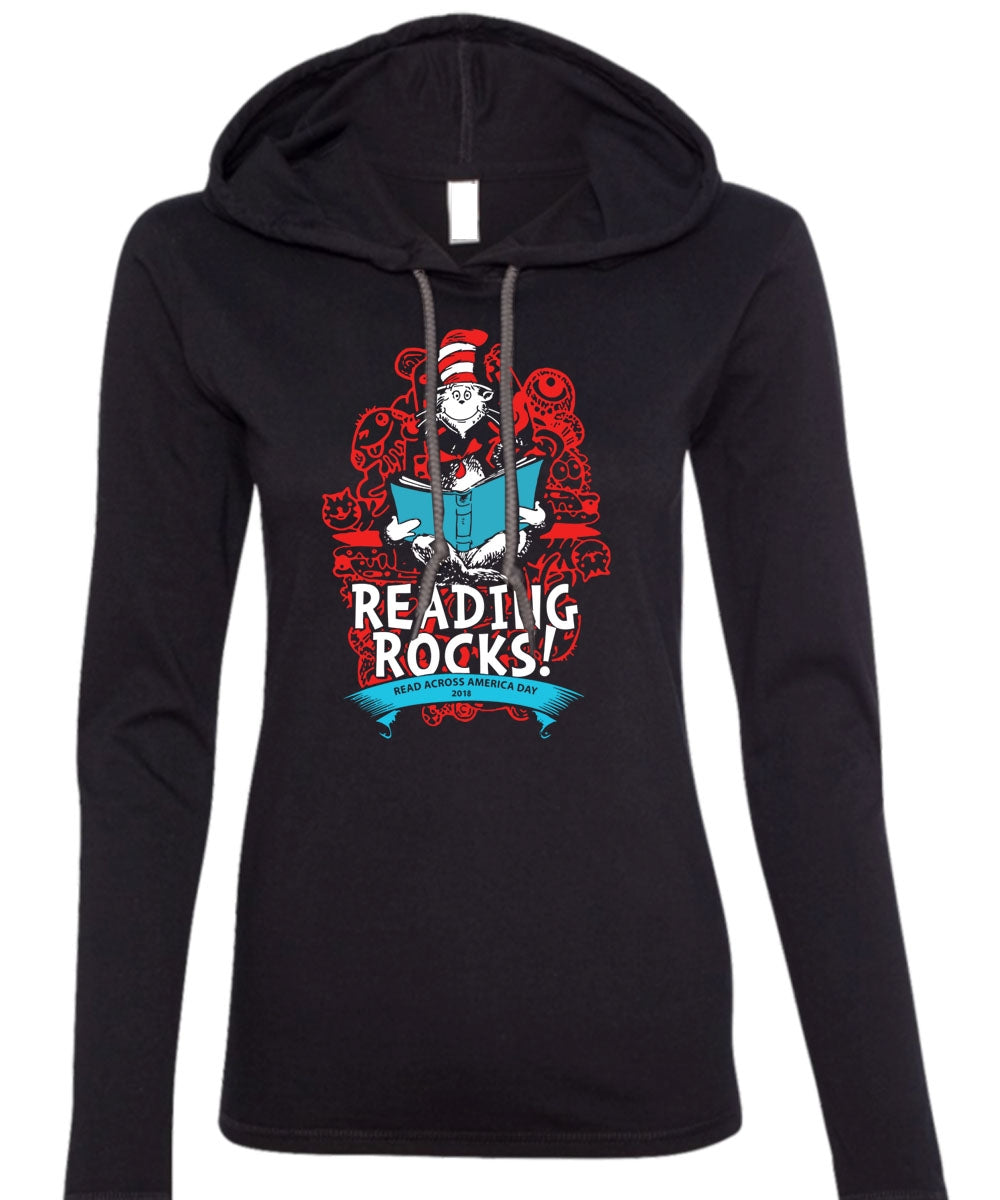 Dr. Seuss T Shirt, Reading Rocks T Shirt, The Cat in the Hat T Shirt, I Love Reading T Shirt (Anvil Ladies Ringspun Hooded)
