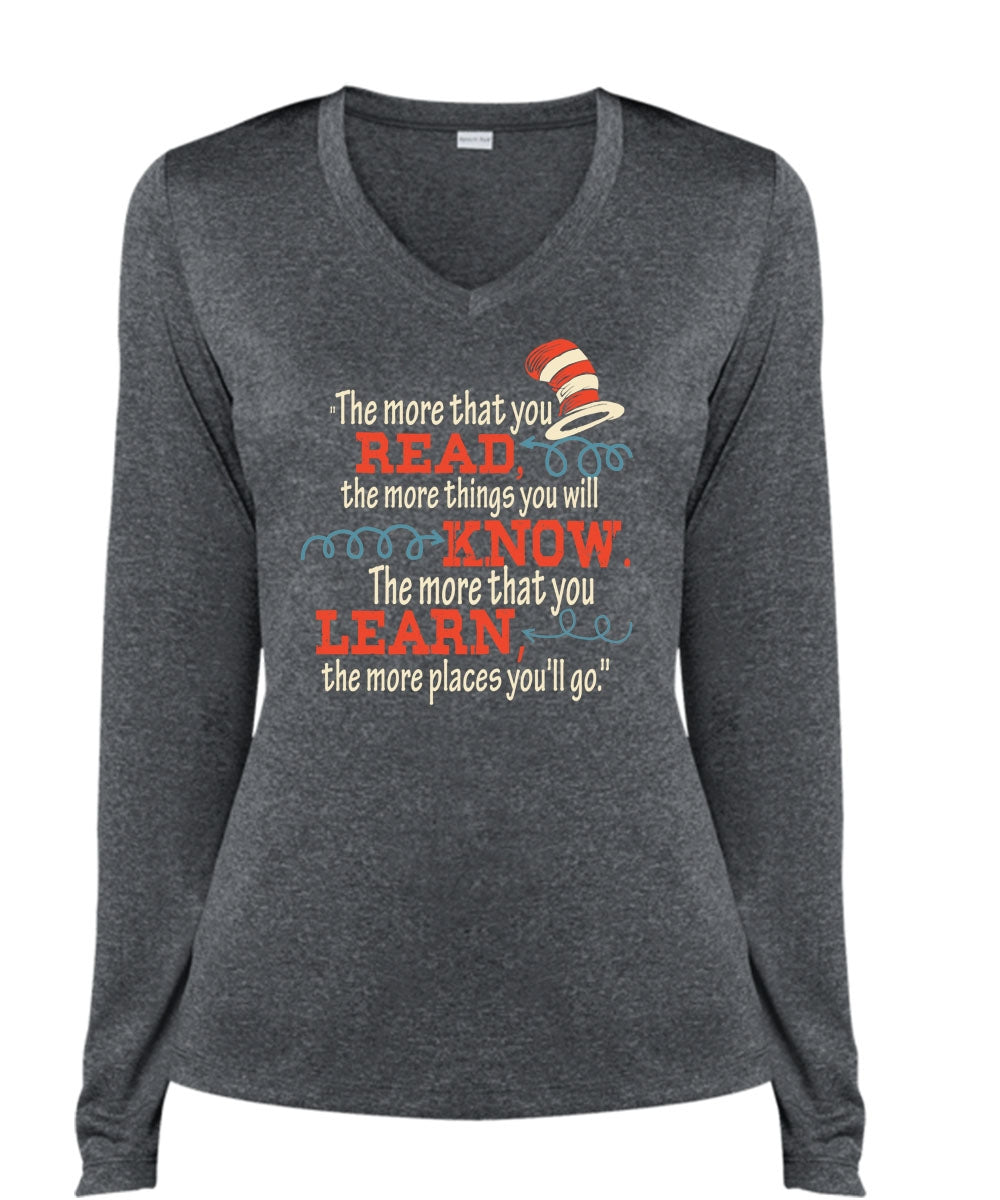 Dr. Seuss T Shirt, The More That You Read T Shirt, The Cat in the Hat T Shirt, You Will Know T Shirt, Cool Shirt (Ladies LS Heather V-Neck)