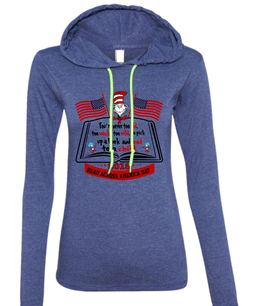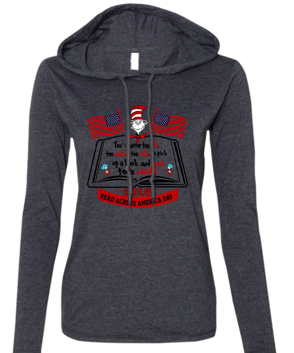 The Cat in the Hat T Shirt, Book And Read T Shirt, Dr. Seuss T Shirt, I Love Reading T Shirt (Anvil Ladies Ringspun Hooded)