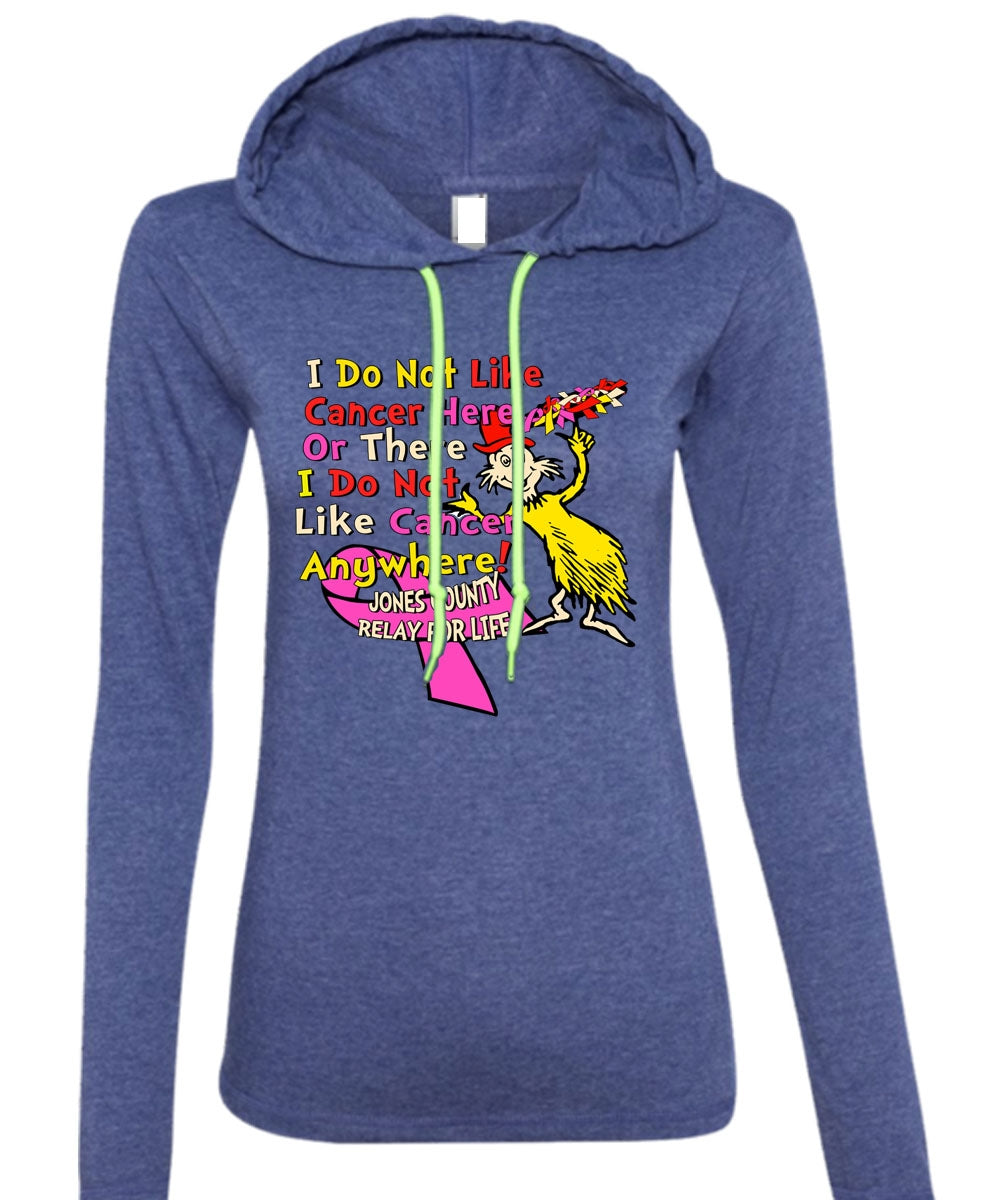 The Cat in the Hat T Shirt, I Do Not Like Cancer Anywhere T Shirt, Dr. Seuss T Shirt, I Love Reading T Shirt (Anvil Ladies Ringspun Hooded)