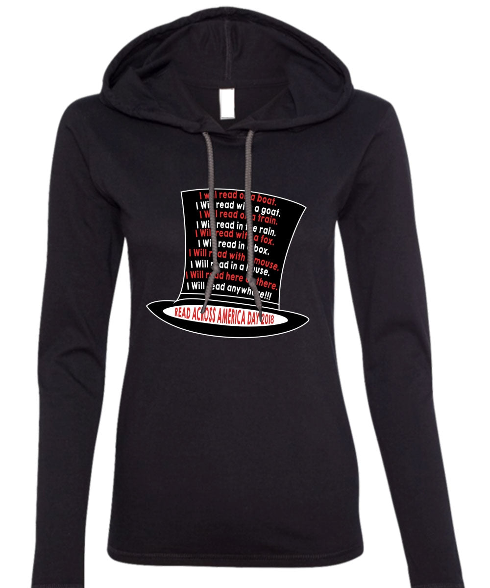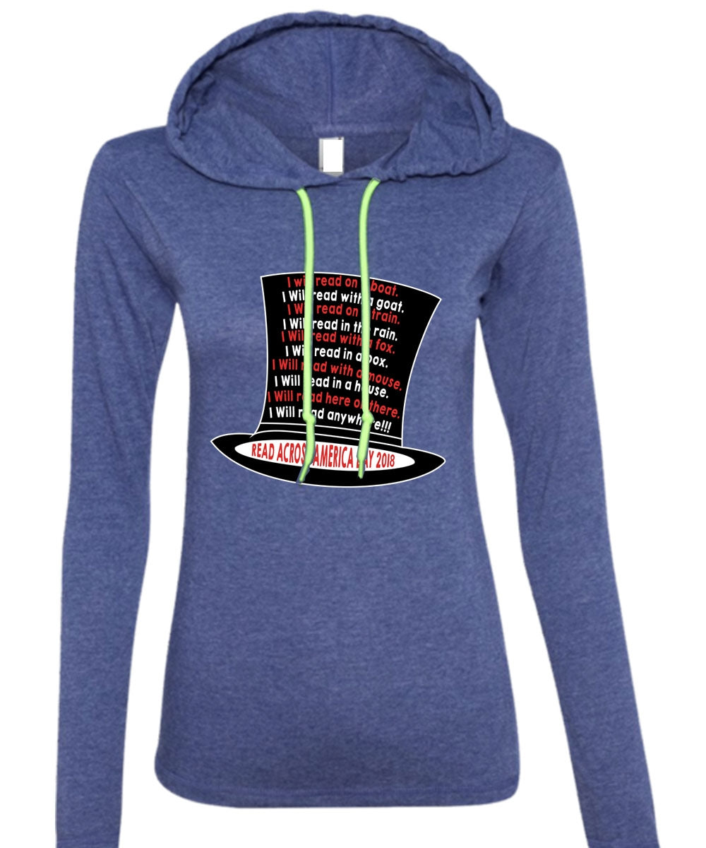 The Cat in the Hat T Shirt, I Will Read With A Goat T Shirt, Dr. Seuss T Shirt, I Will Read Here Or There T Shirt (Anvil Ladies Ringspun Hooded)