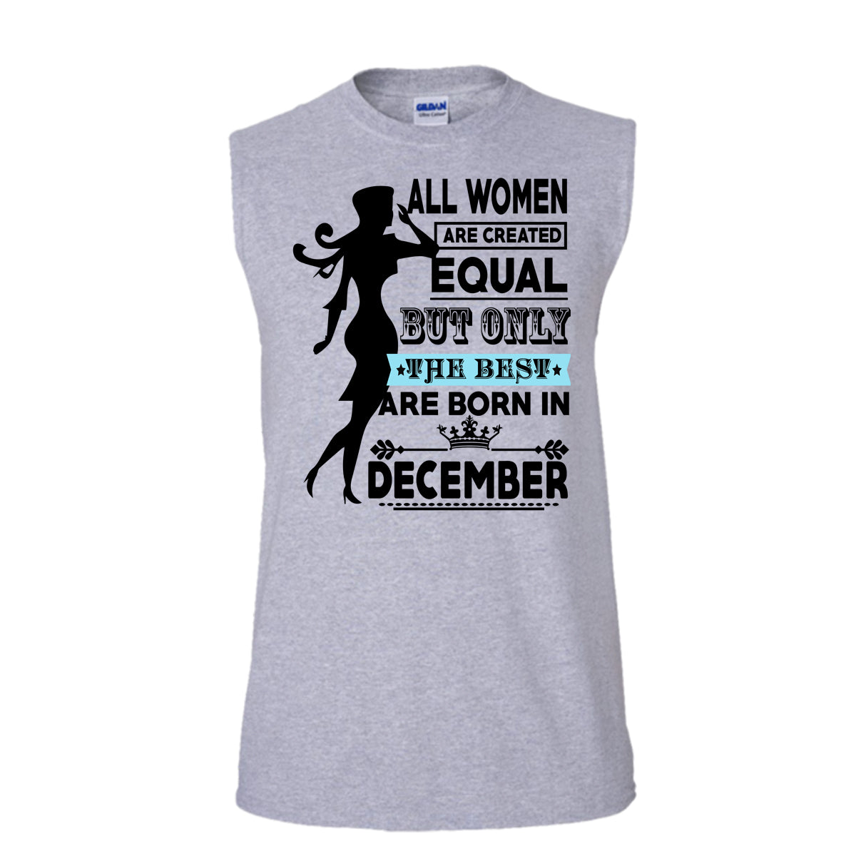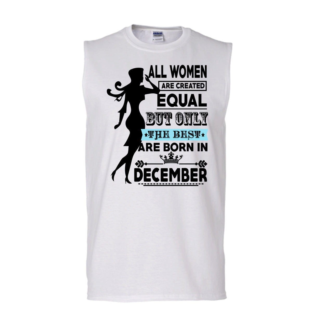 All Women Are Created Equal T Shirt, Coolest December Lady T Shirt, Awesome t-shirts (Men's Cotton Sleeveless)