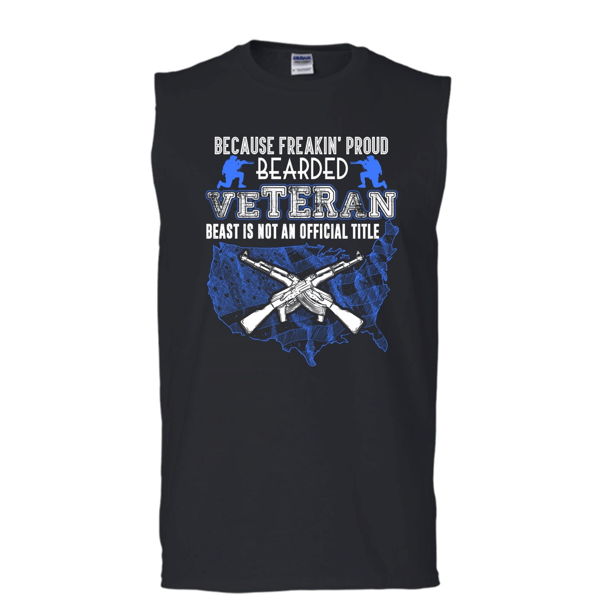 Because Freakin' Proud Bearded Veteran T Shirt, Not An Official Title T Shirt, Cool T Shirt (Men's Cotton Sleeveless)