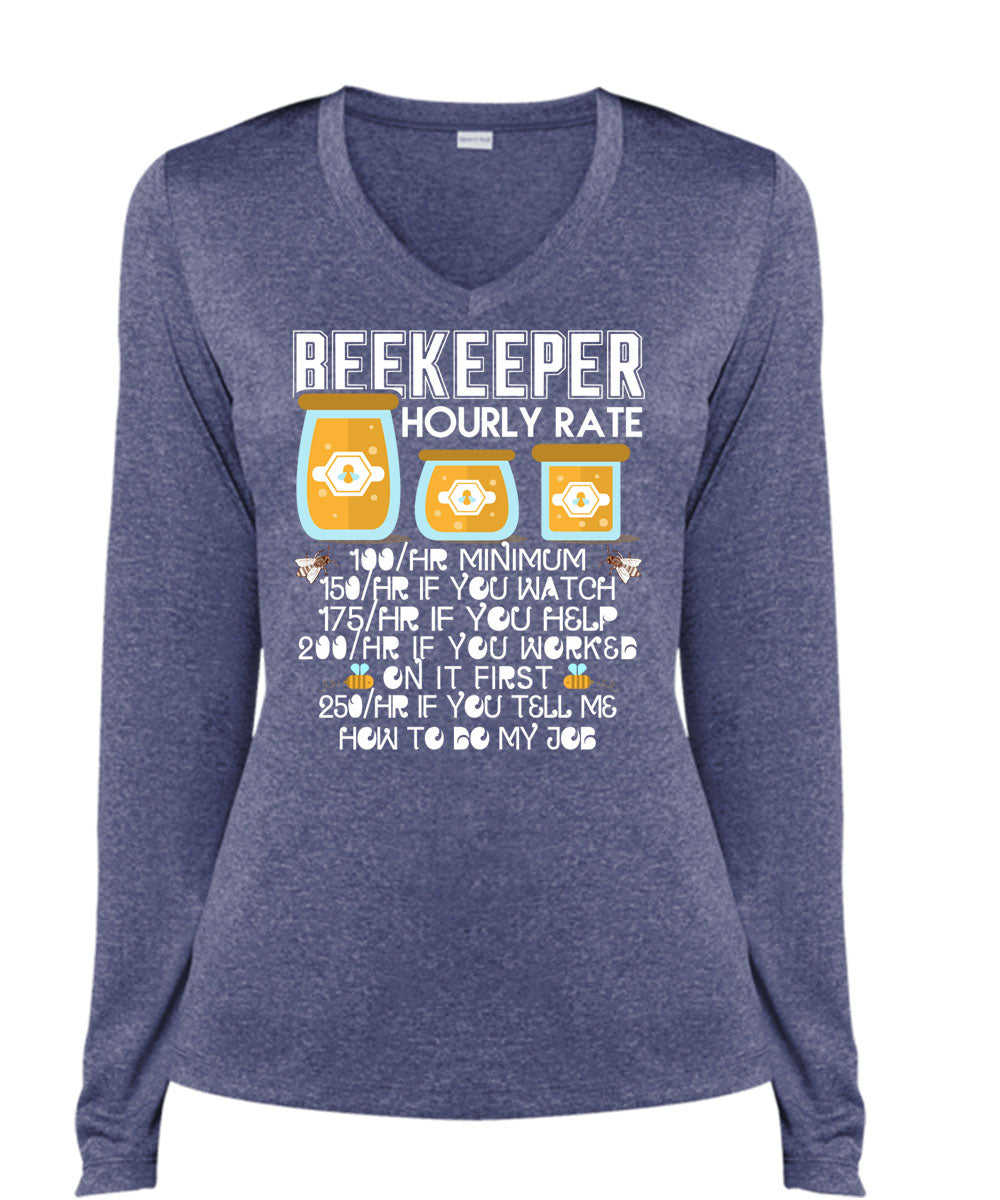 Beekeeper Hourly Rate T Shirt, I Love Beekeeping T Shirt, Cool Shirt (Ladies LS Heather V-Neck)