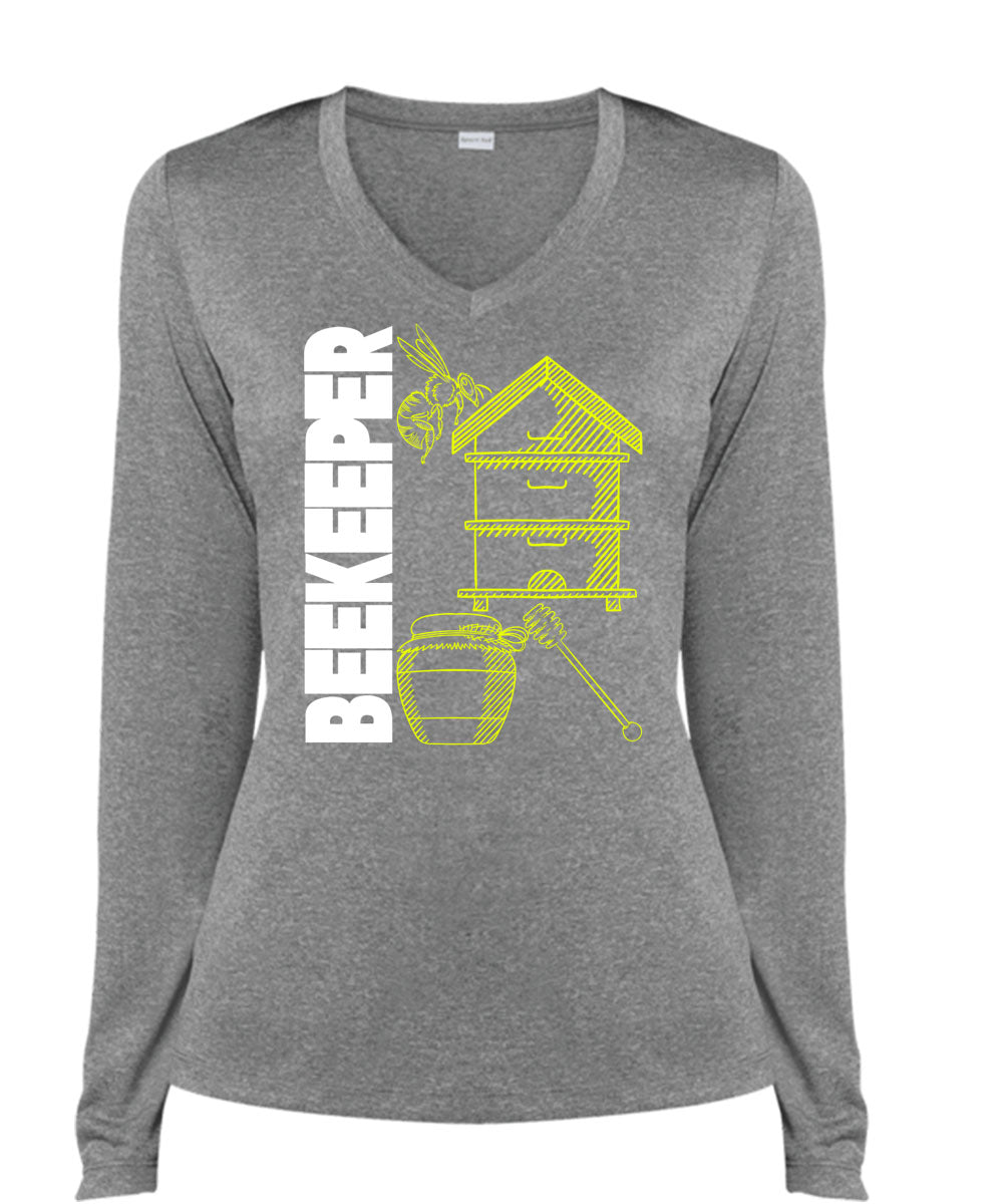 Being A Beekeeper T Shirt, I Love Beekeeping T Shirt, Cool Shirt (Ladies LS Heather V-Neck)