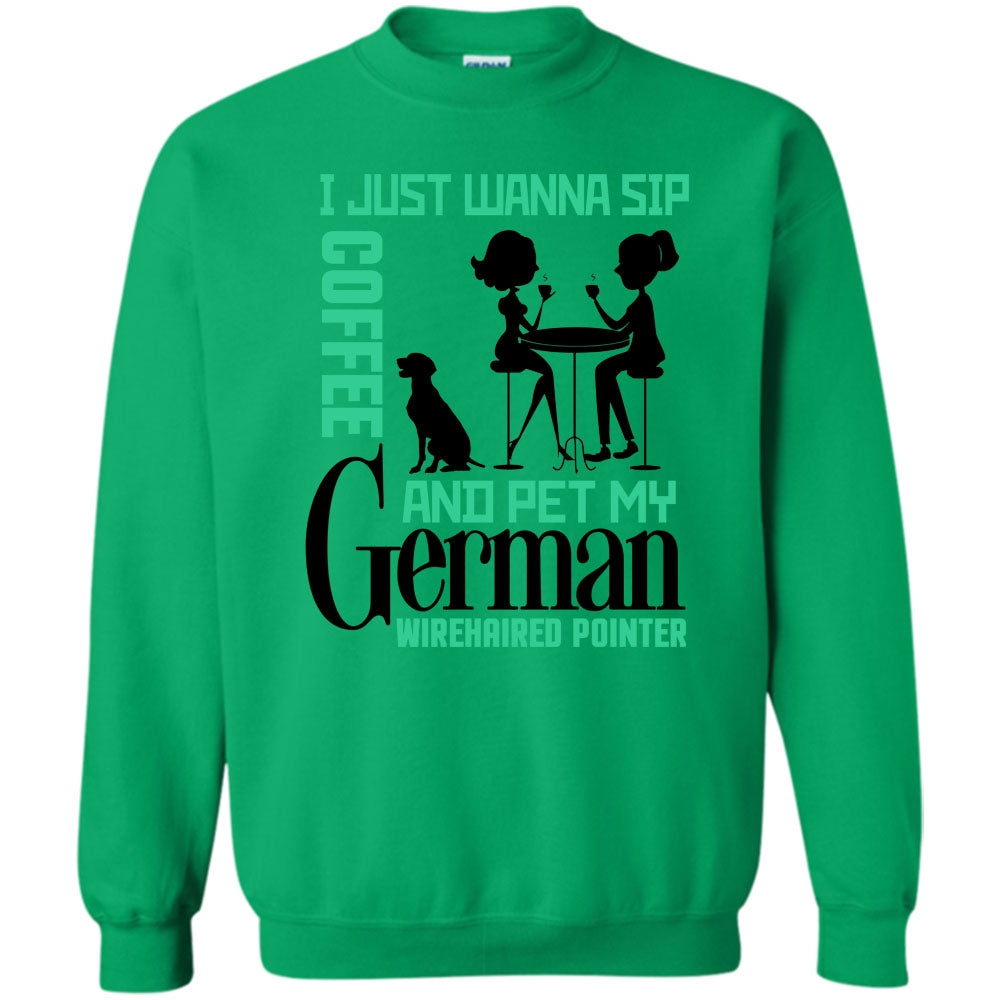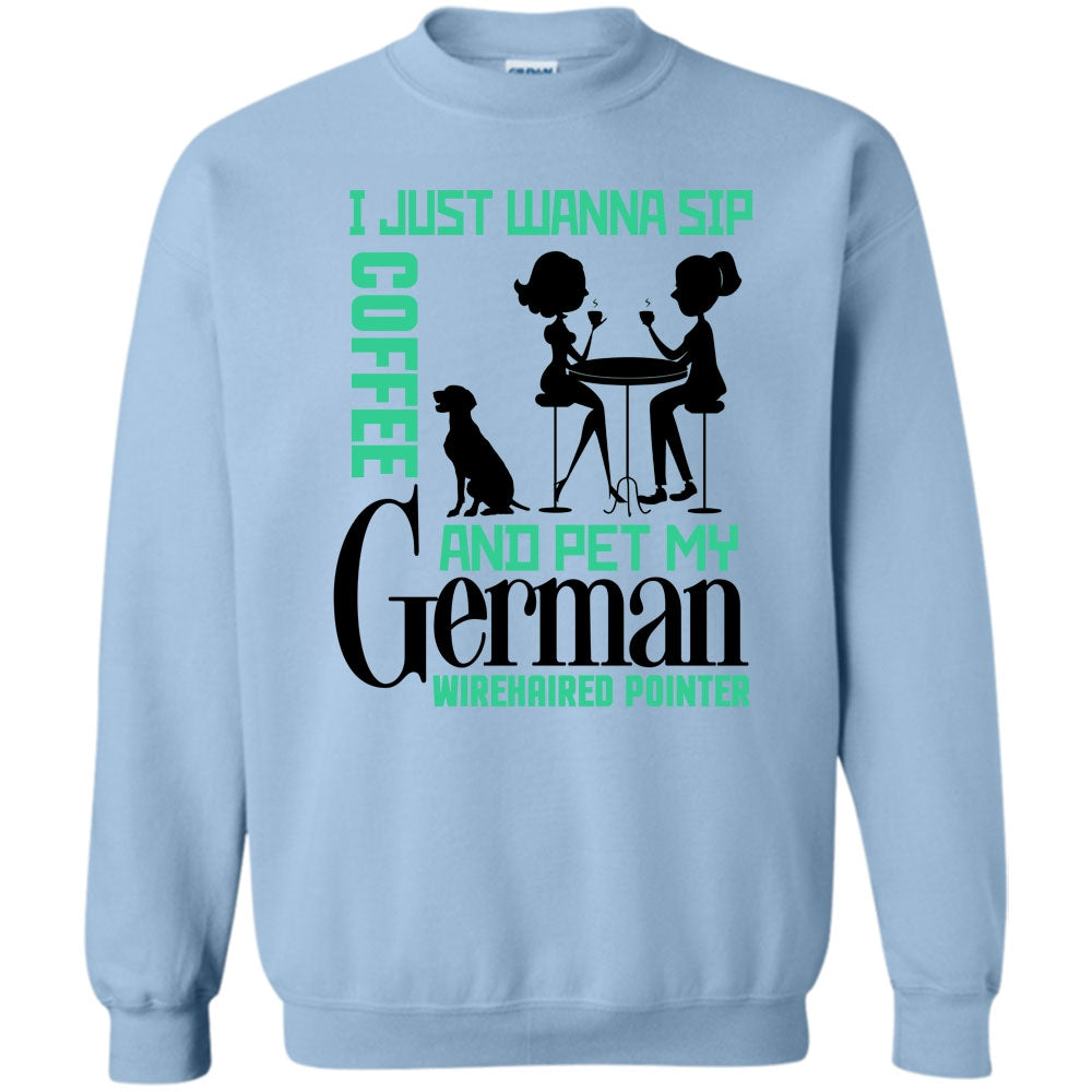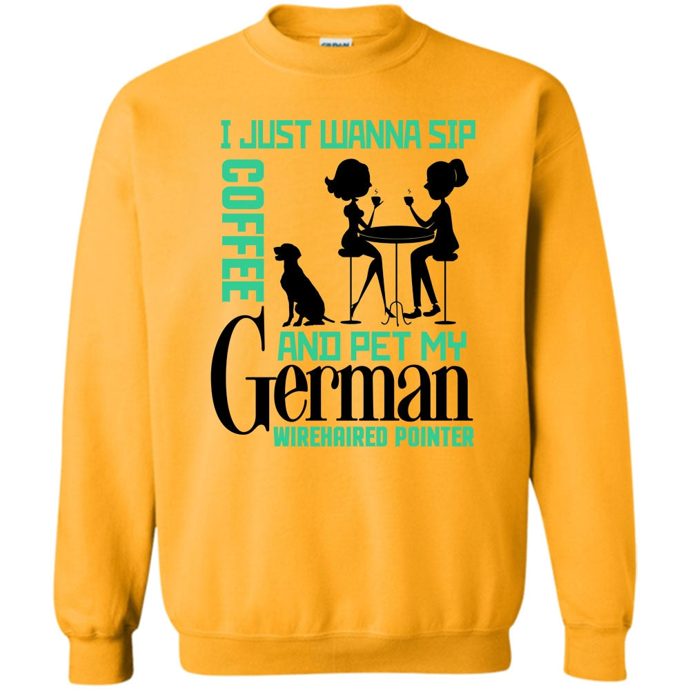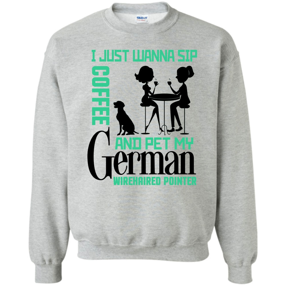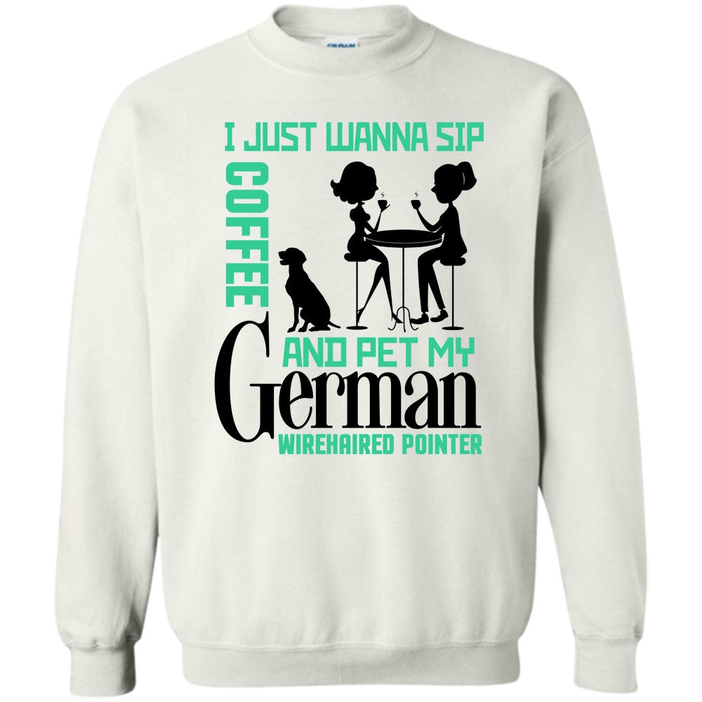 Coolest German Wirehaired Pointer T Shirt, I Just Wanna Sip Coffee Sweatshirt