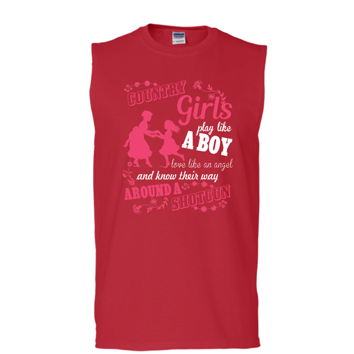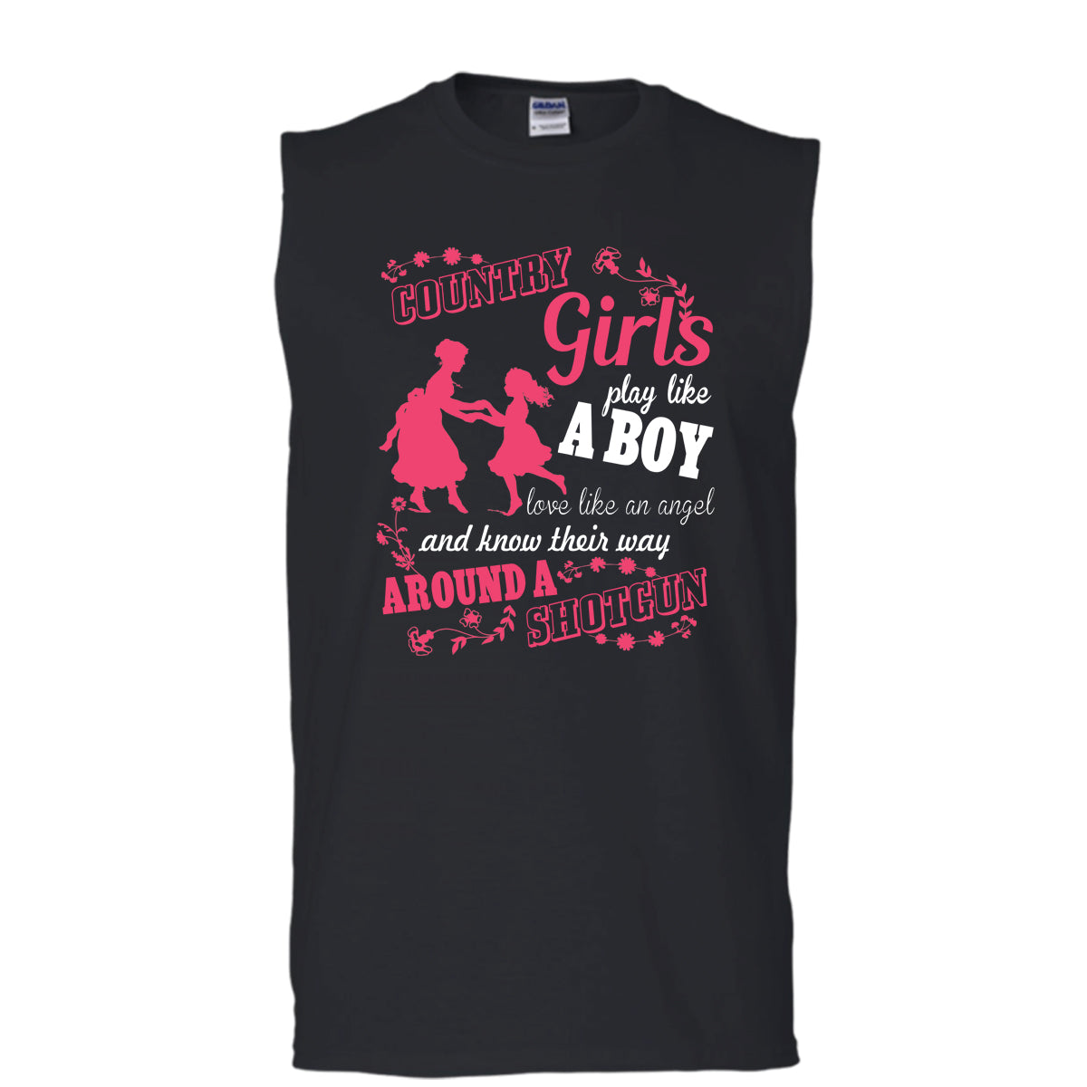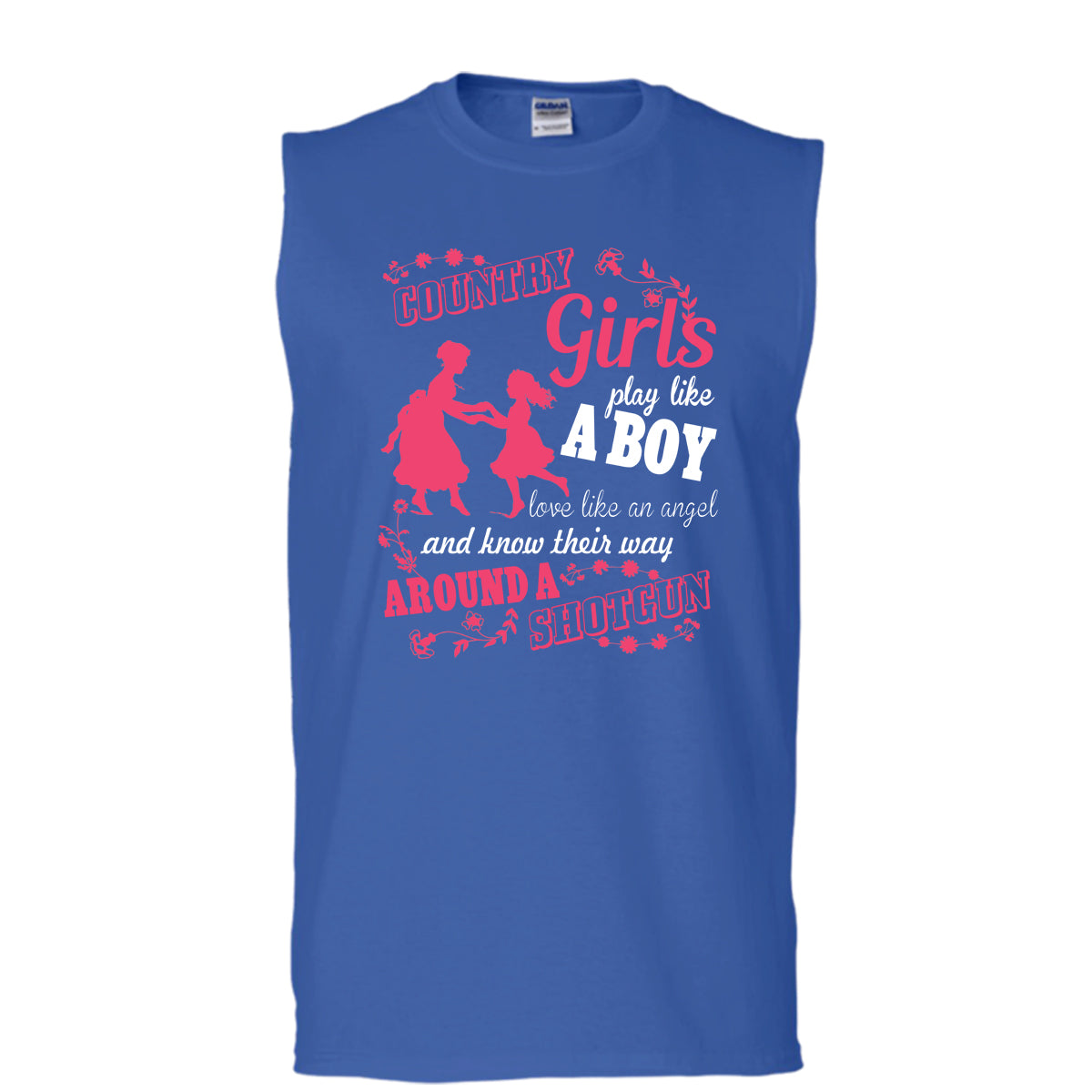 Country Girls Play Like A Boy T Shirt, Love Like An Angel T Shirt, Cool T Shirt (Men's Cotton Sleeveless)