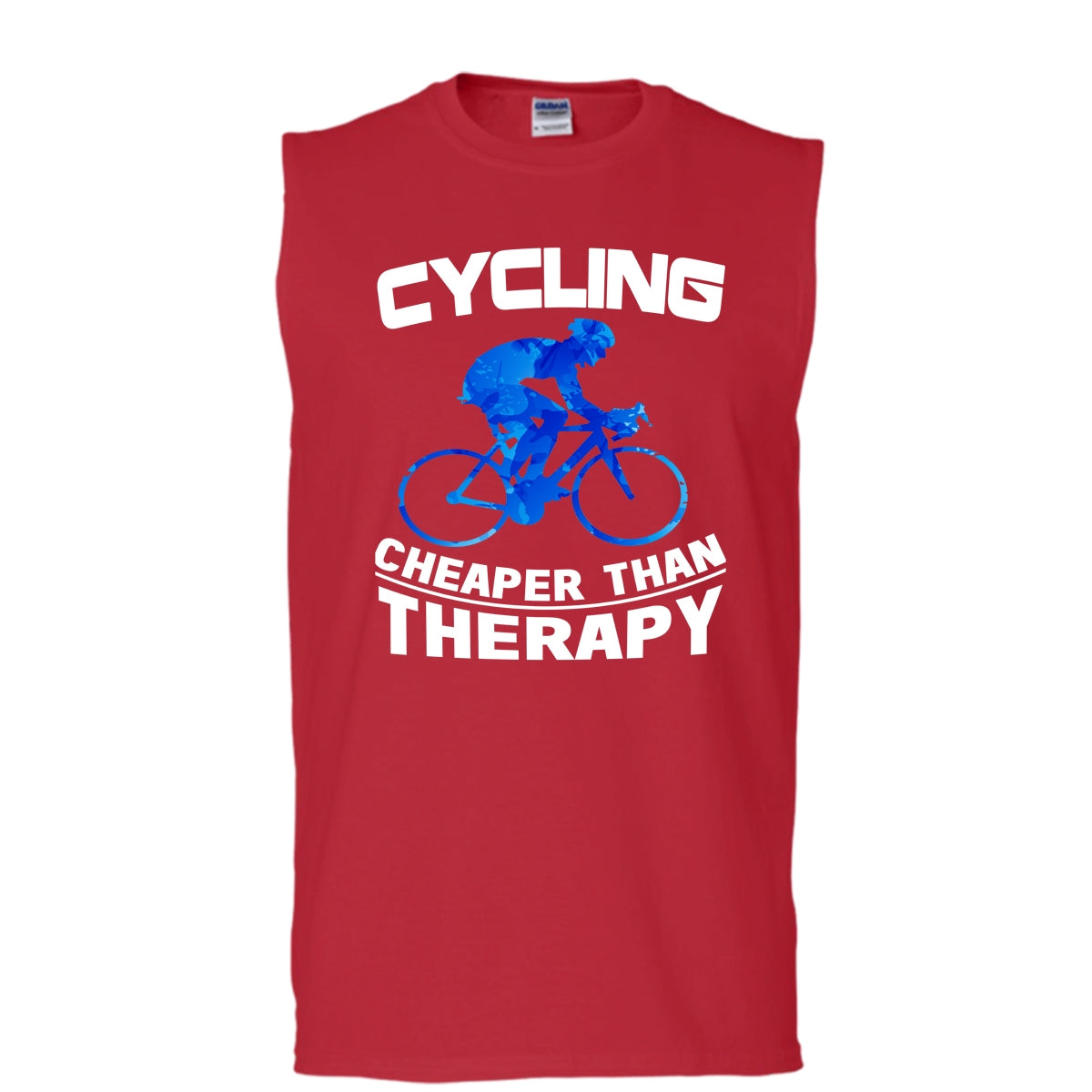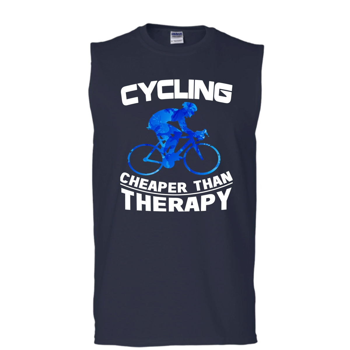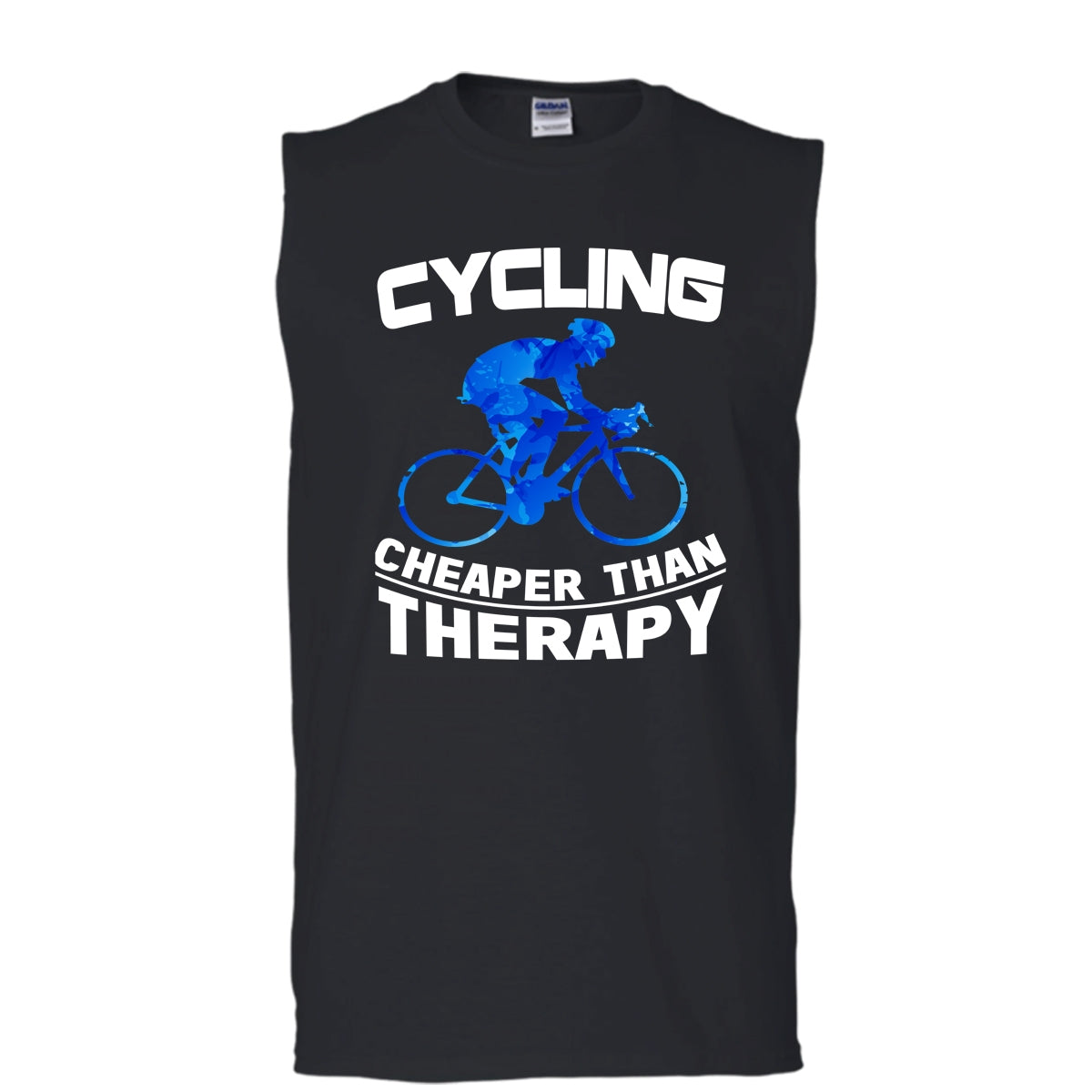 Cycling Cheaper Than Therapy T Shirt, Coolest Biking T Shirt, Cool T Shirt (Men's Cotton Sleeveless)