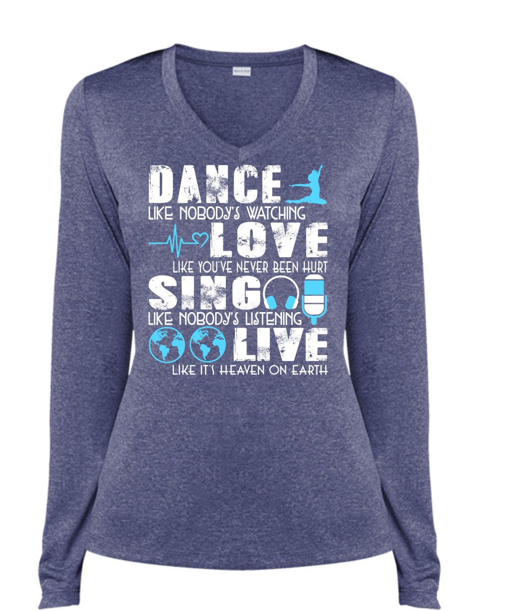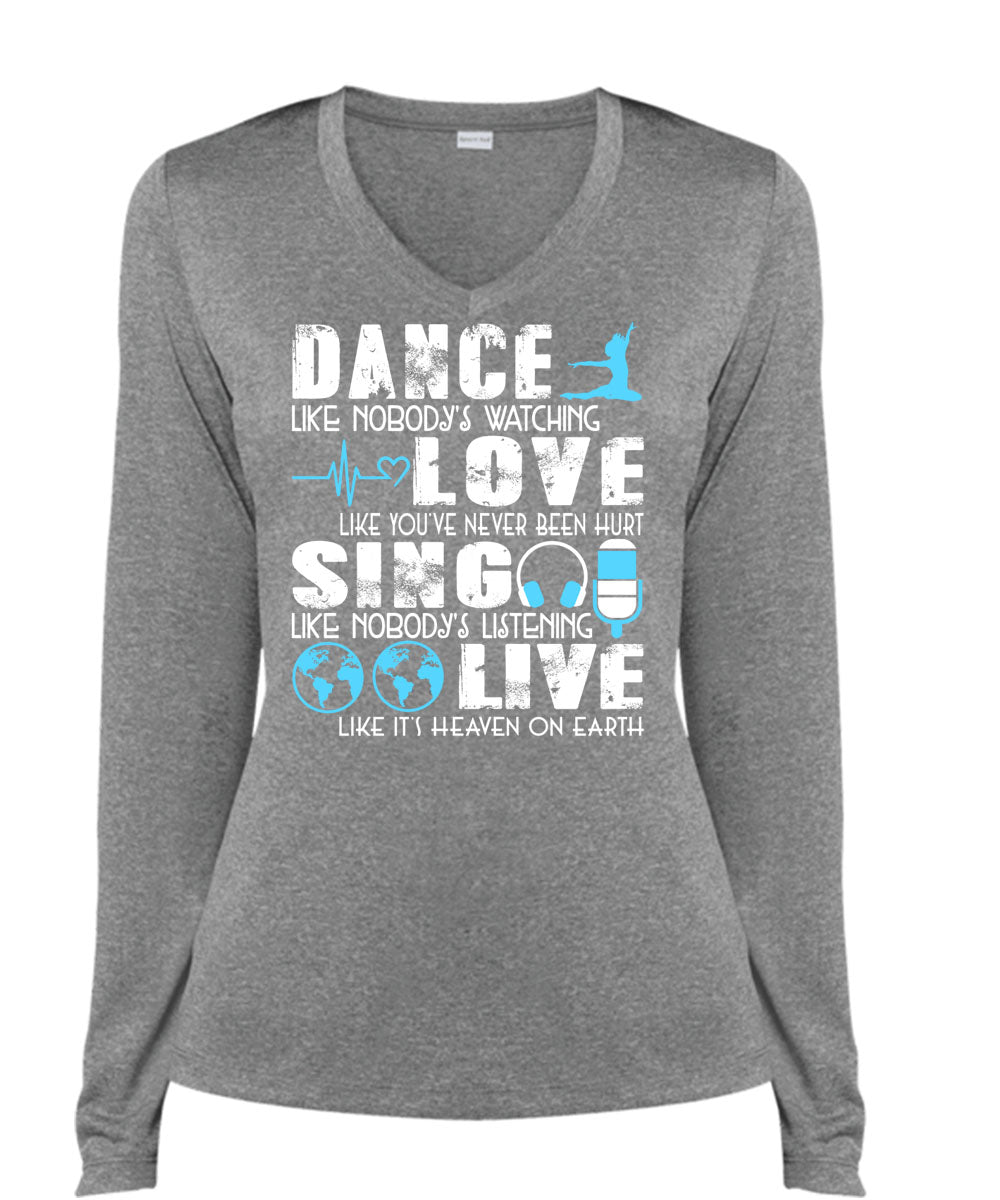 Dance Like Nobody's Watching Love T Shirt, Sing Like Nobody's Listening T Shirt, Cool Shirt (Ladies LS Heather V-Neck)