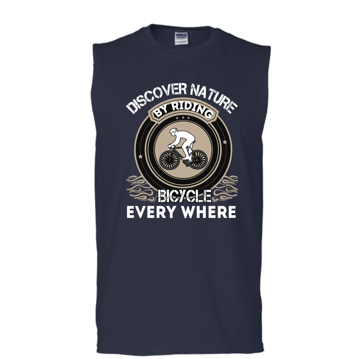 Discover Nature By Riding Bicycle T Shirt, Coolest Biker T Shirt, Cool T Shirt (Men's Cotton Sleeveless)