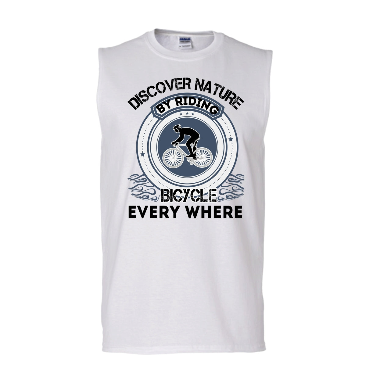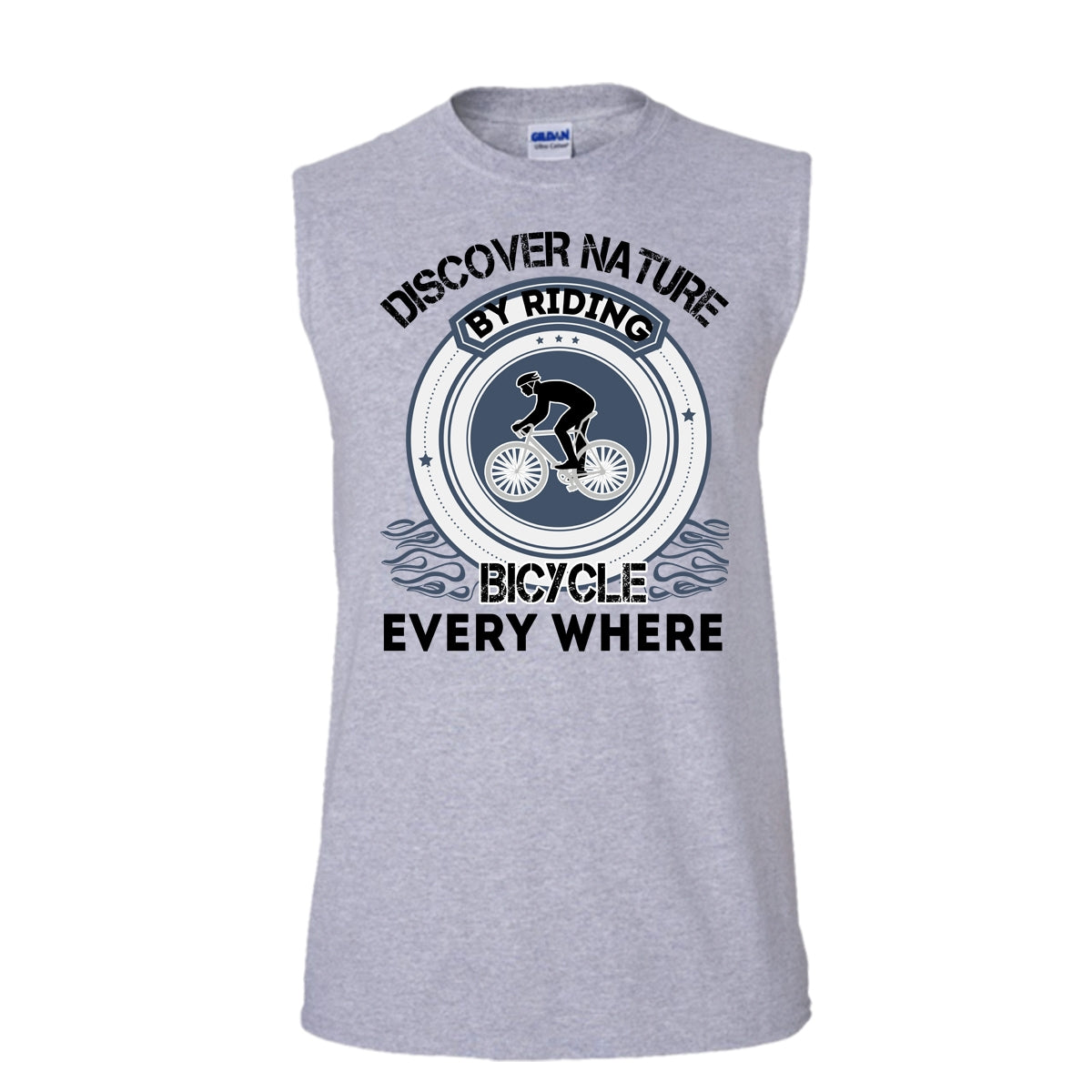 Discover Nature By Riding Bicycle T Shirt, I Love Biking T Shirt, Awesome t-shirts (Men's Cotton Sleeveless)