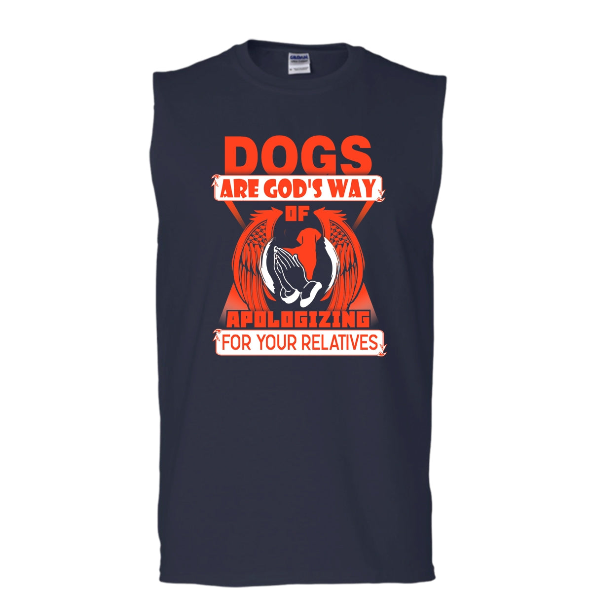 Dogs Are God's Way T Shirt, Of Apologizing For Your Relatives Tank Top (Men's Cotton Sleeveless)