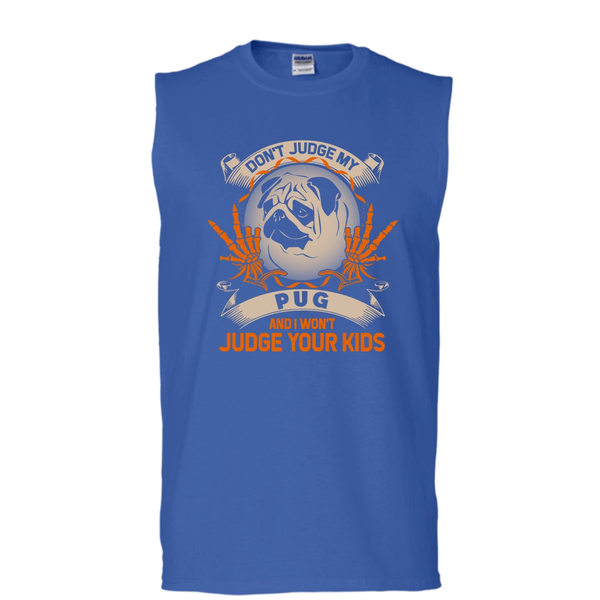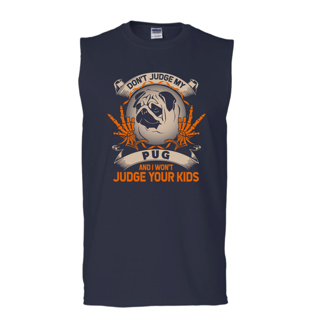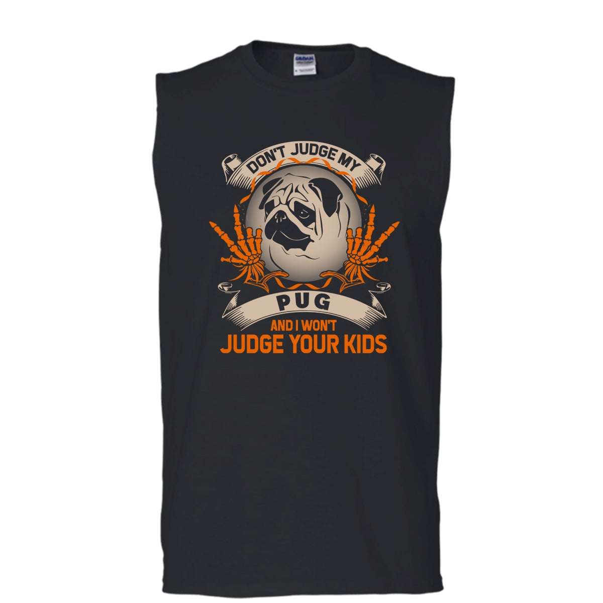Don't Judge My Pug T Shirt, I Won't Judge Your Kids Tank Top (Men's Cotton Sleeveless)