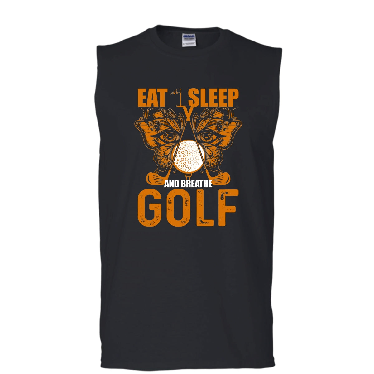 Eat Sleep And Breathe Golf T Shirt, Coolest Golf Lover Tank Top (Men's Cotton Sleeveless)