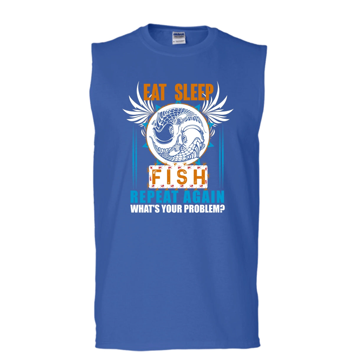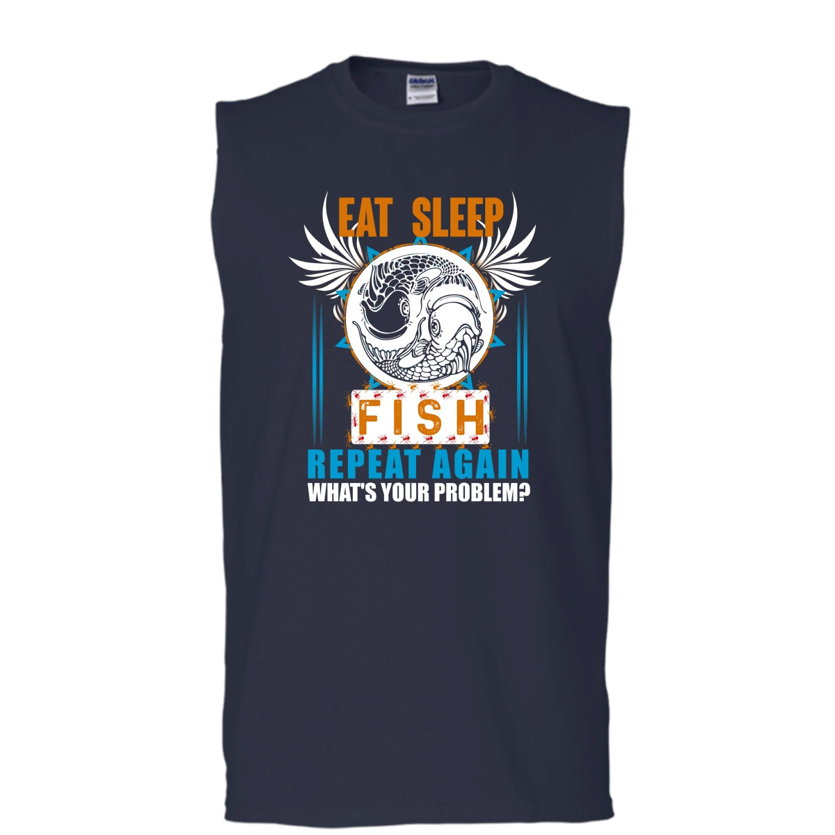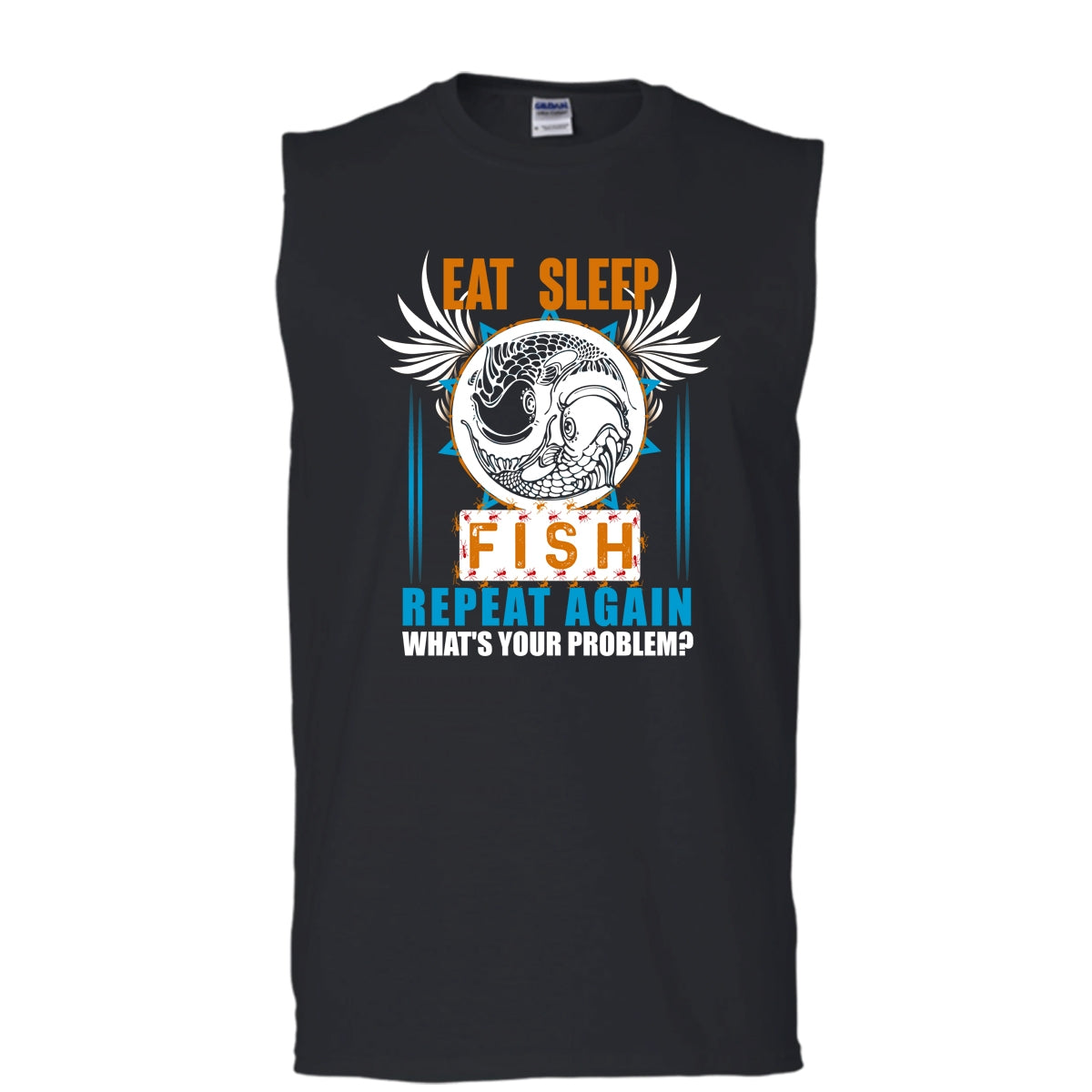Eat Sleep Fish Repeat Again T Shirt, What's Your Problem Tank Top (Men's Cotton Sleeveless)