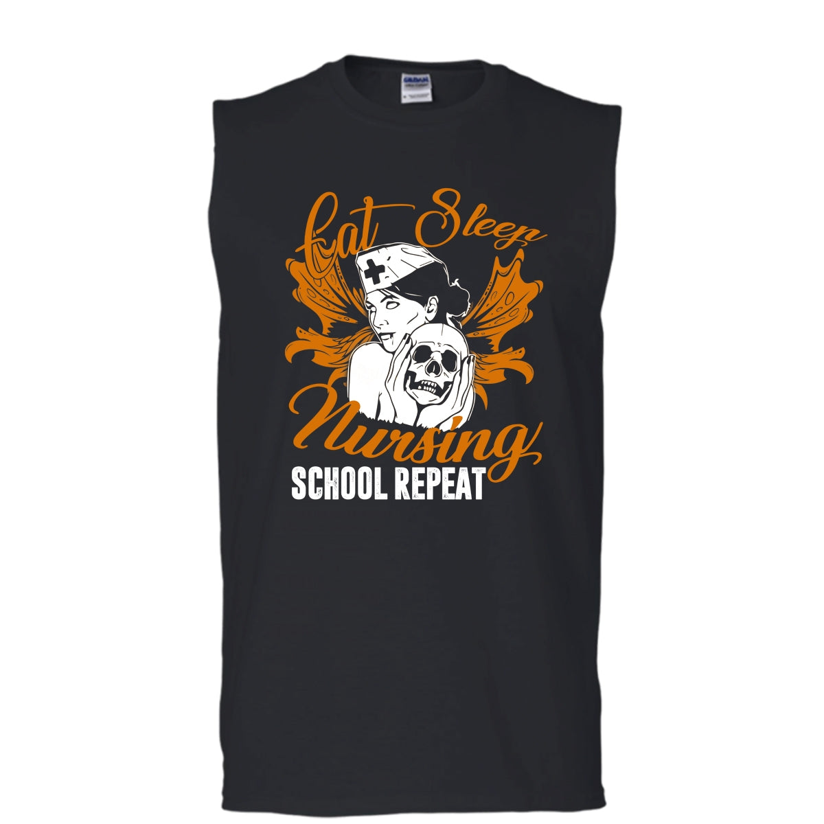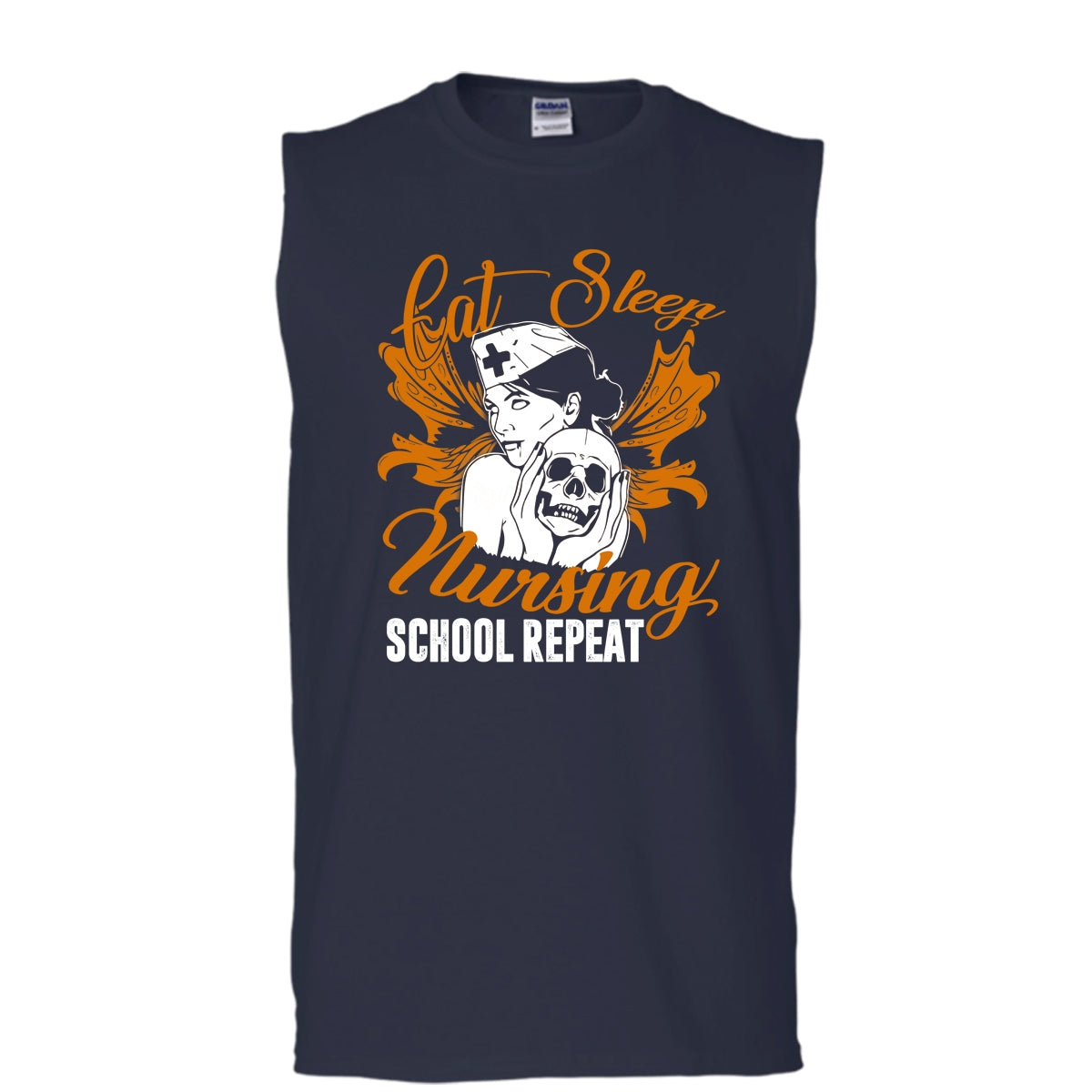 Eat Sleep Nursing School Repeat T Shirt, Coolest Nursing Lover Tank Top (Men's Cotton Sleeveless)