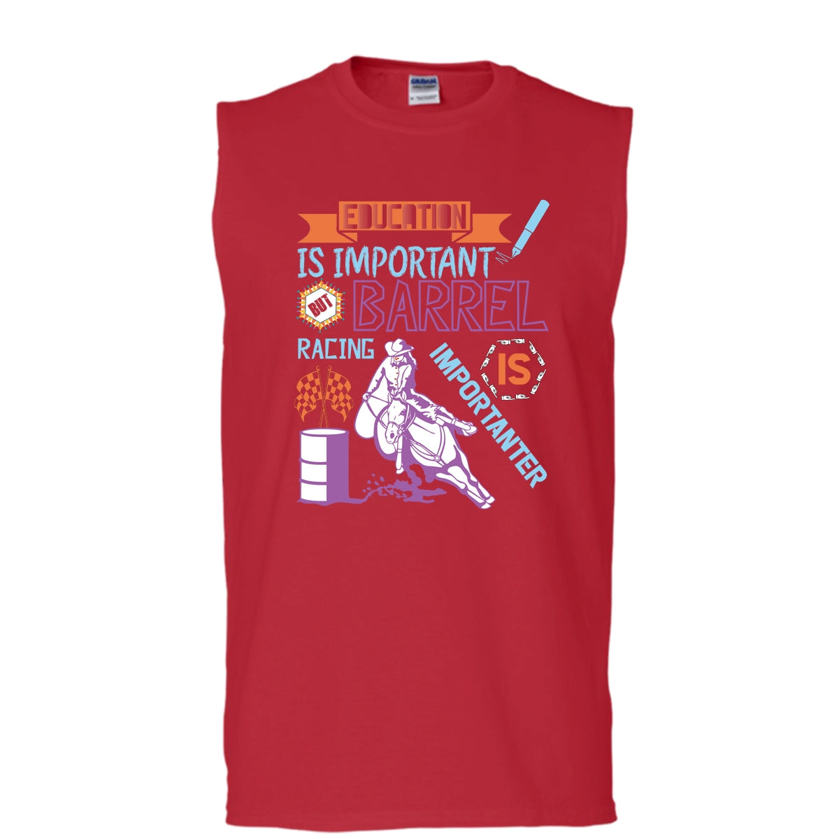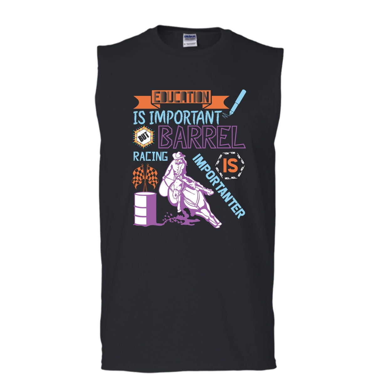 Education Is Important T Shirt, Barrel Racing Importanter Tank Top (Men's Cotton Sleeveless)