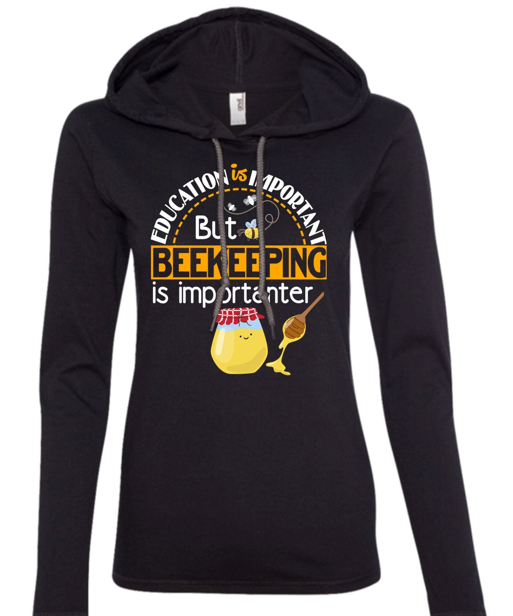 Education Is Important T Shirt, Beekeeping Is Importanter T Shirt (Anvil Ladies Ringspun Hooded)