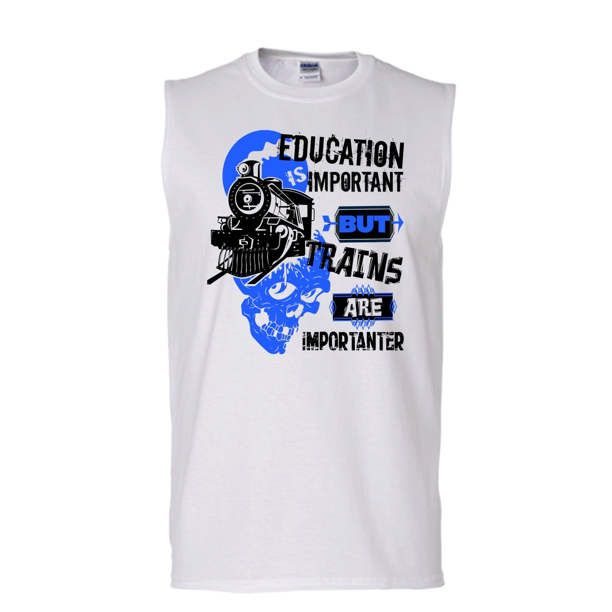 Education Is Important T Shirt, Coolest Trains T Shirt, Awesome t-shirts (Men's Cotton Sleeveless)