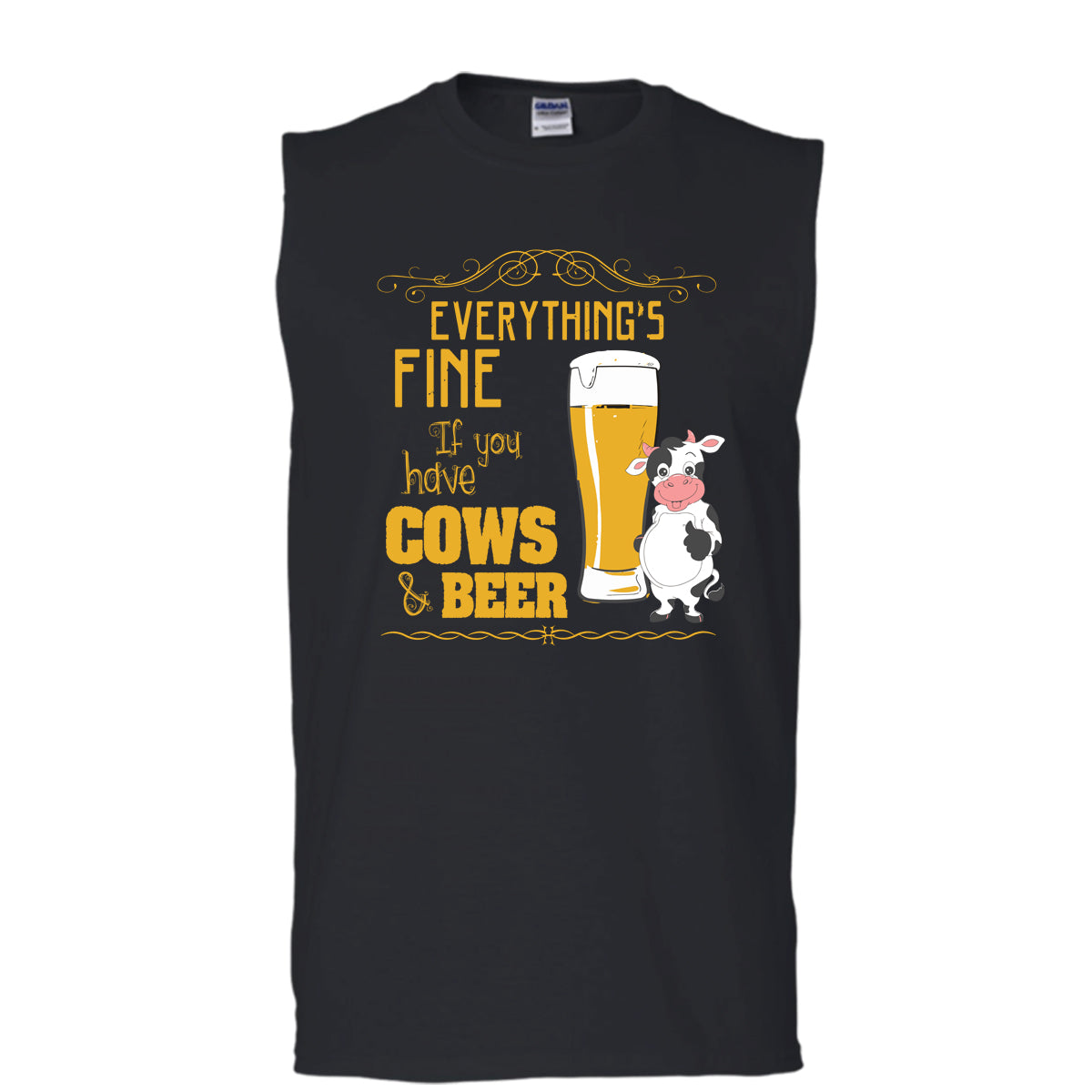 Everything's Fine T Shirt, If You Have Cows & Beer T Shirt, Cool T Shirt (Men's Cotton Sleeveless)