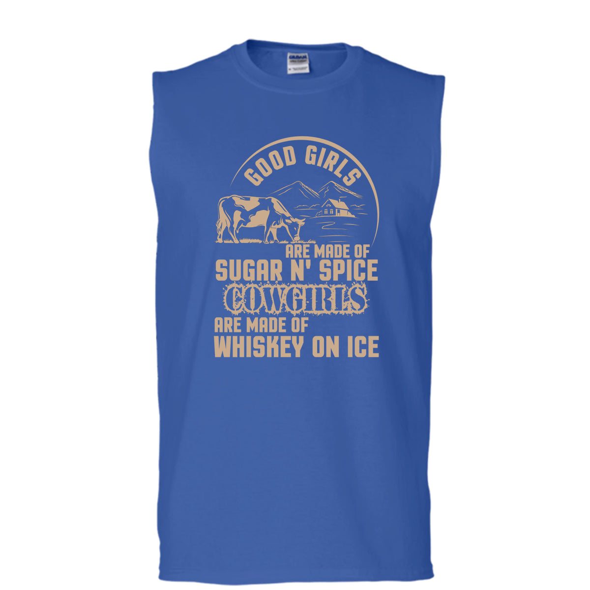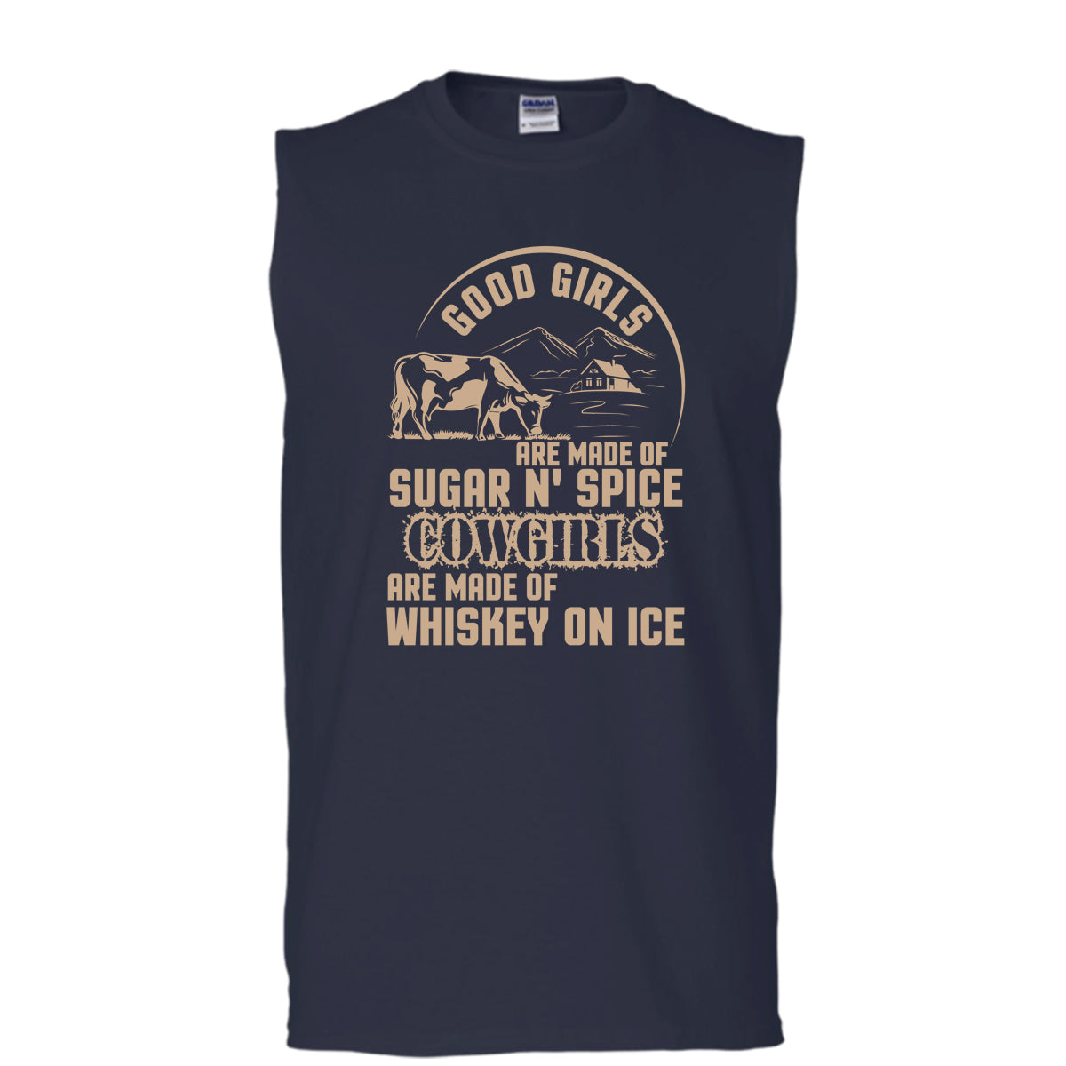 Good Girls Are Made Of Sugar T Shirt, Cowgirls Make Of Whiskey On Ice T Shirt, Cool T Shirt (Men's Cotton Sleeveless)
