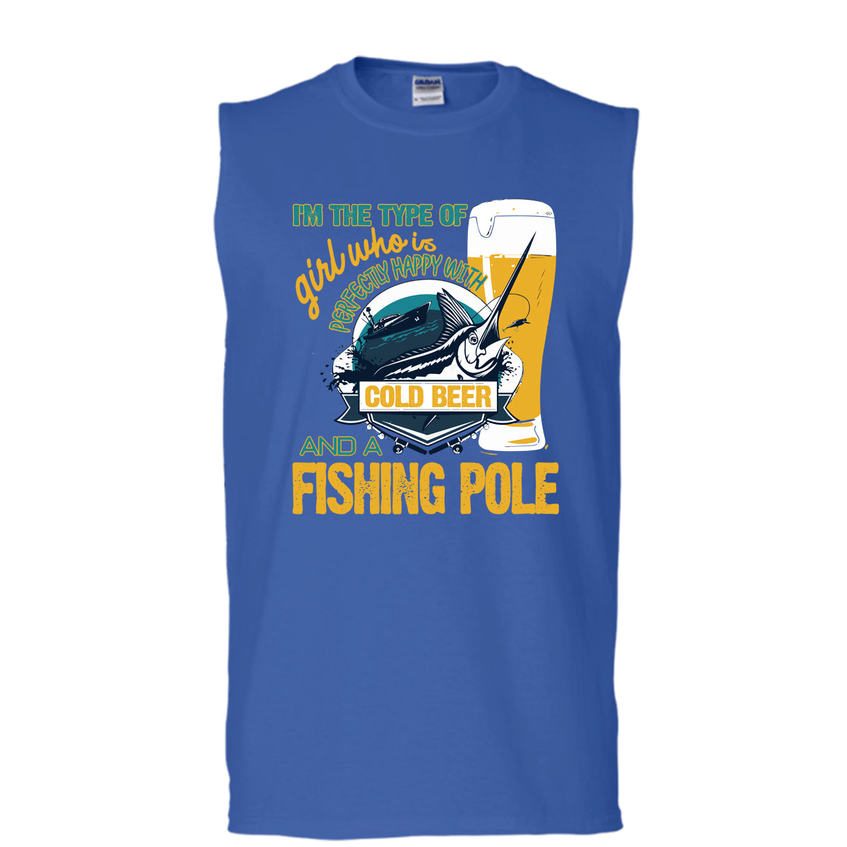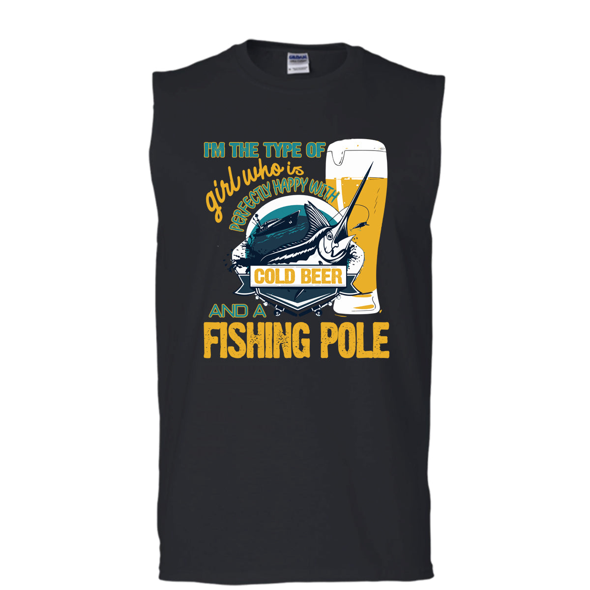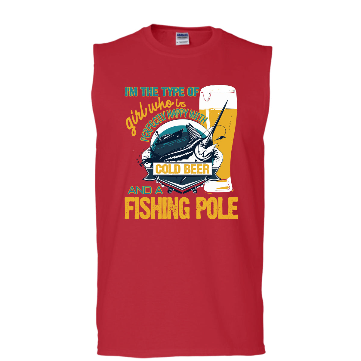 Happy with Cool Beer T Shirt, And A Fishing Pole T Shirt, Cool T Shirt (Men's Cotton Sleeveless)
