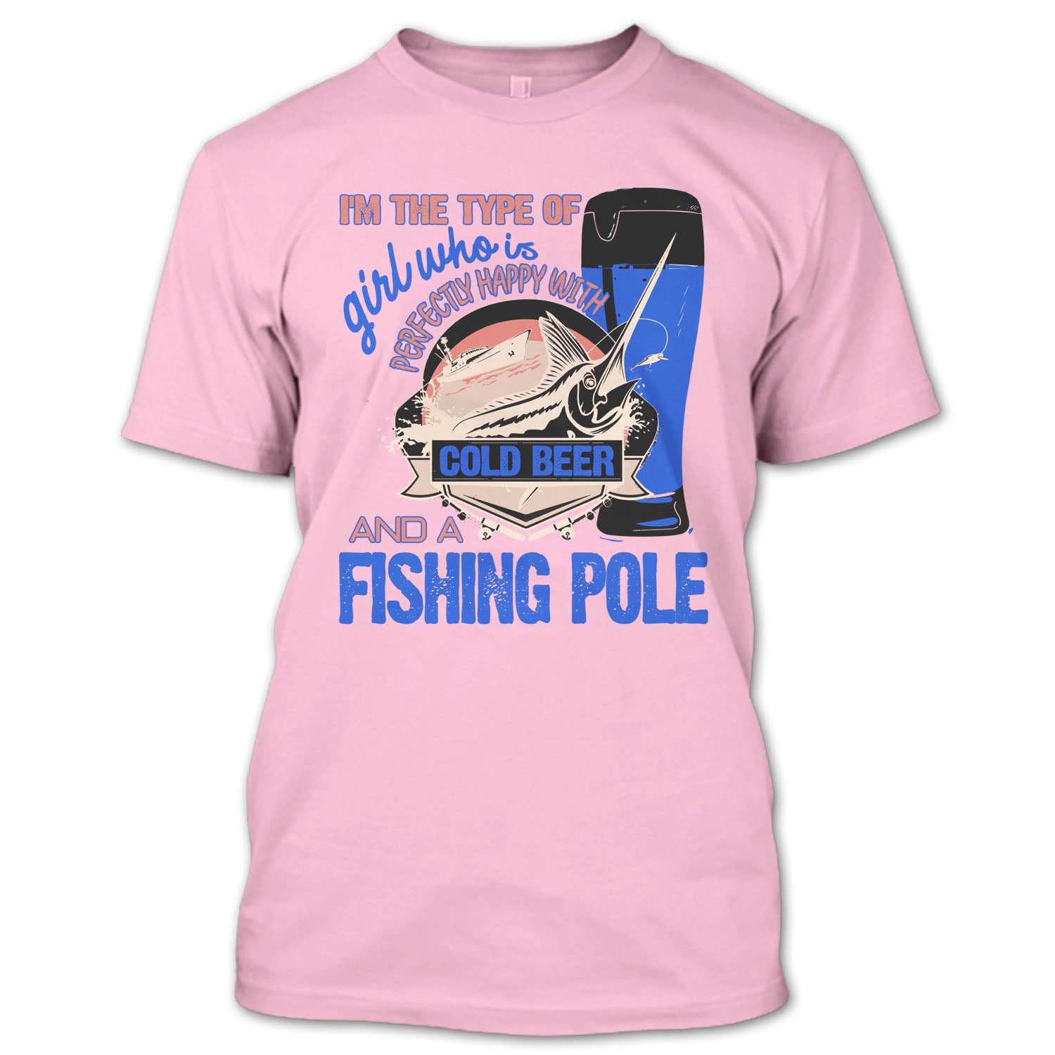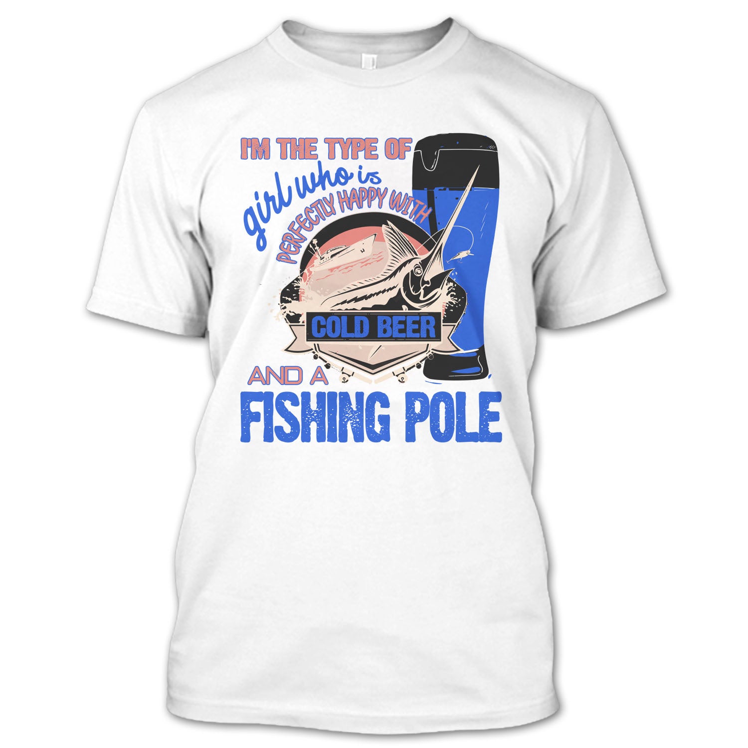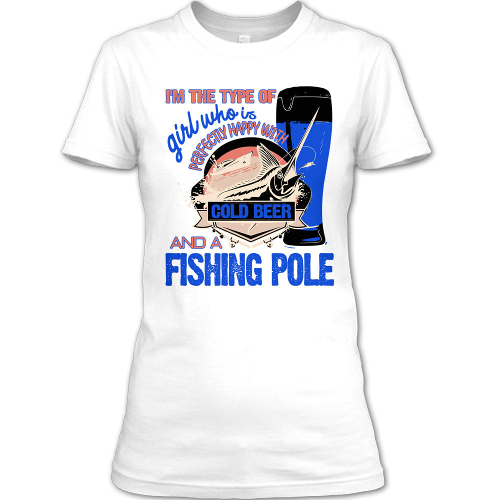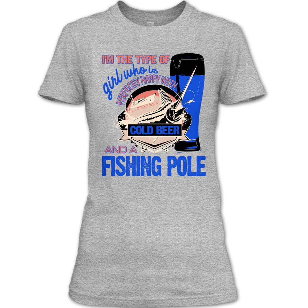 Happy with Cool Beer T Shirt, Coolest Fishing Girl T Shirt