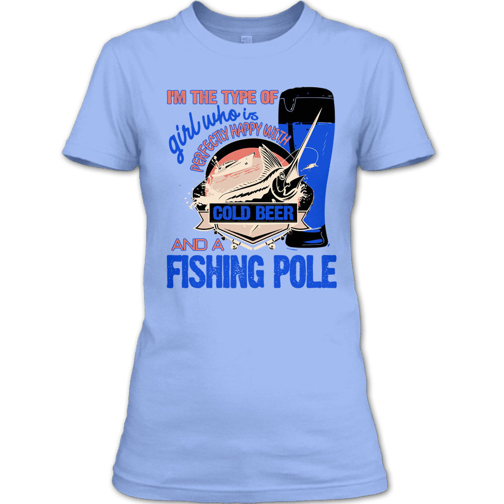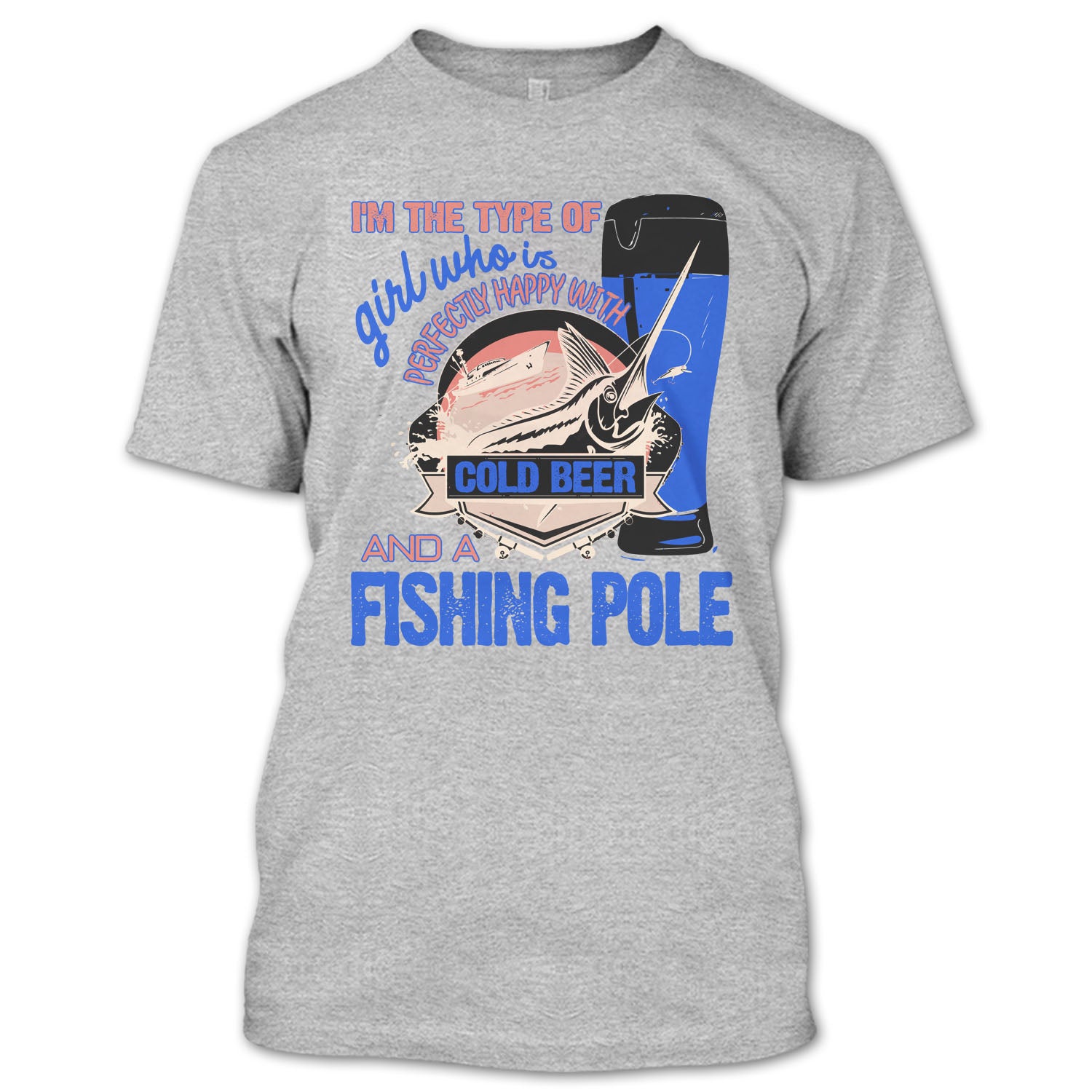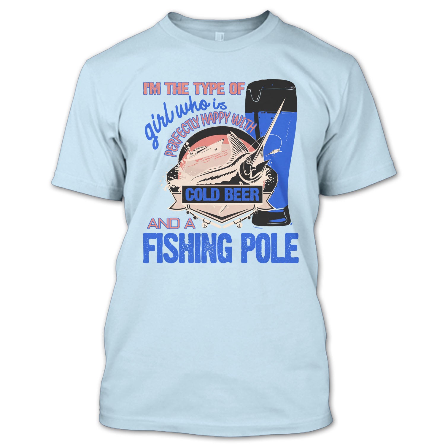 Happy with Cool Beer T Shirt, Coolest Fishing Girl T Shirt