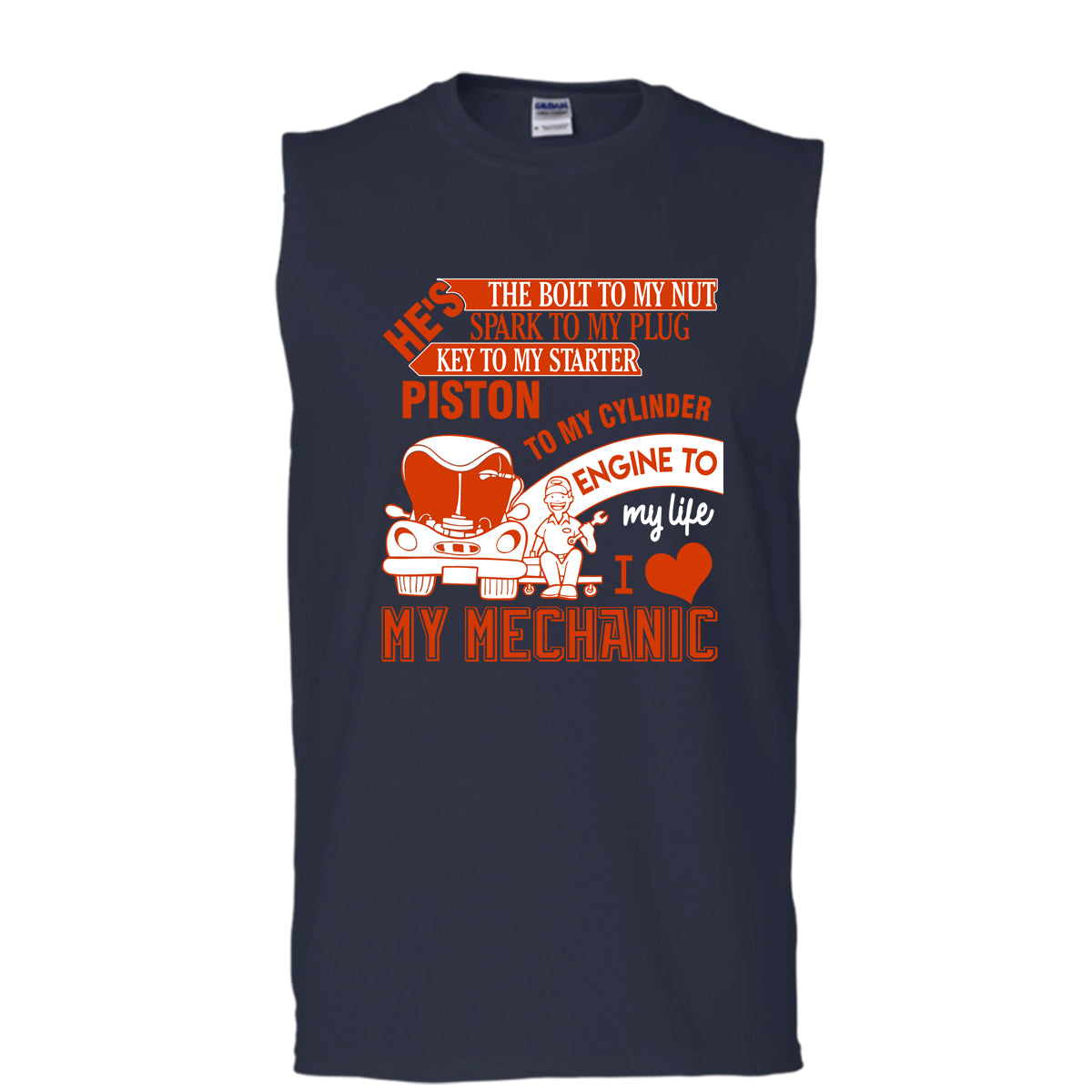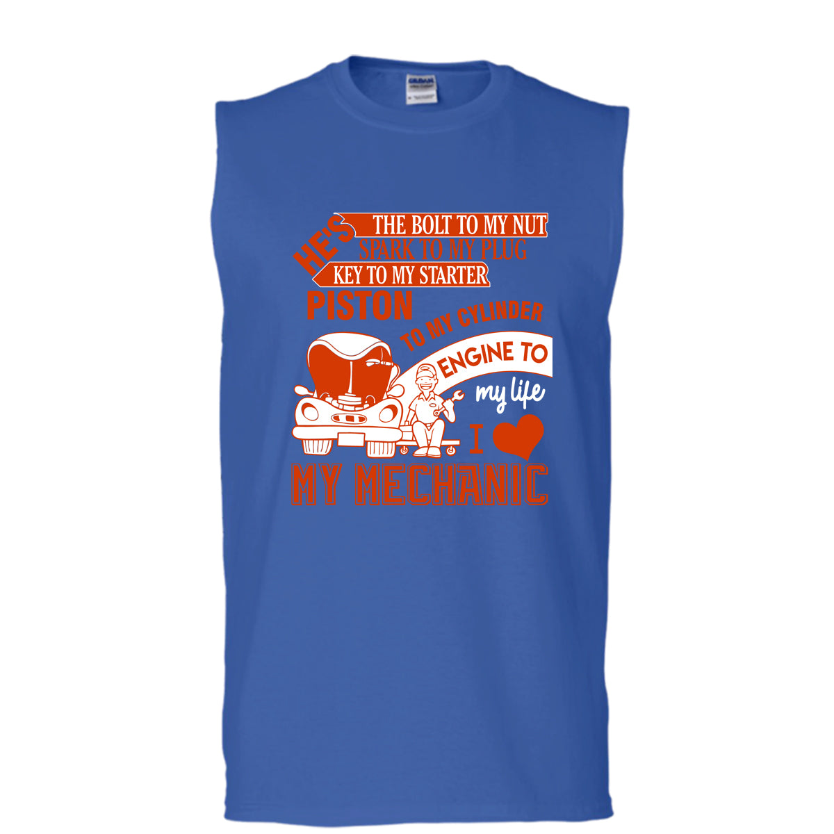 He's The Bolt To My Nut T Shirt, I Love My Mechanic T Shirt, Cool T Shirt (Men's Cotton Sleeveless)