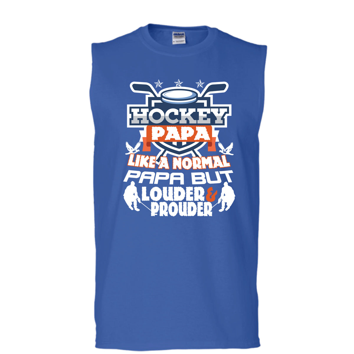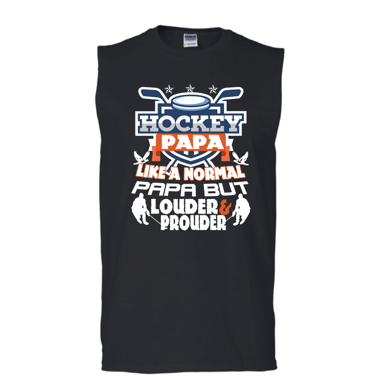 Hockey Papa T Shirt, A Normal Papa But Louder Prouder T Shirt, Cool T Shirt (Men's Cotton Sleeveless)