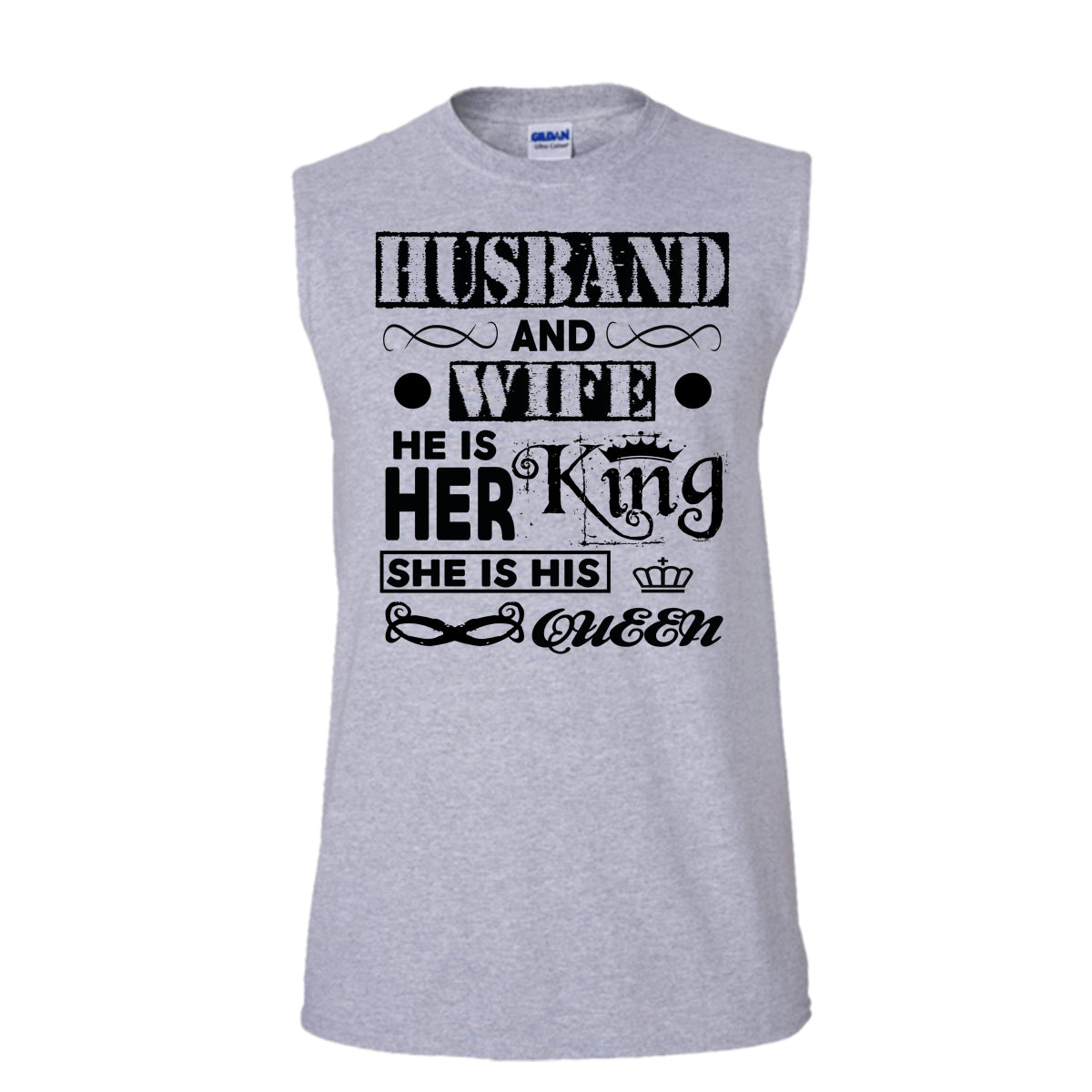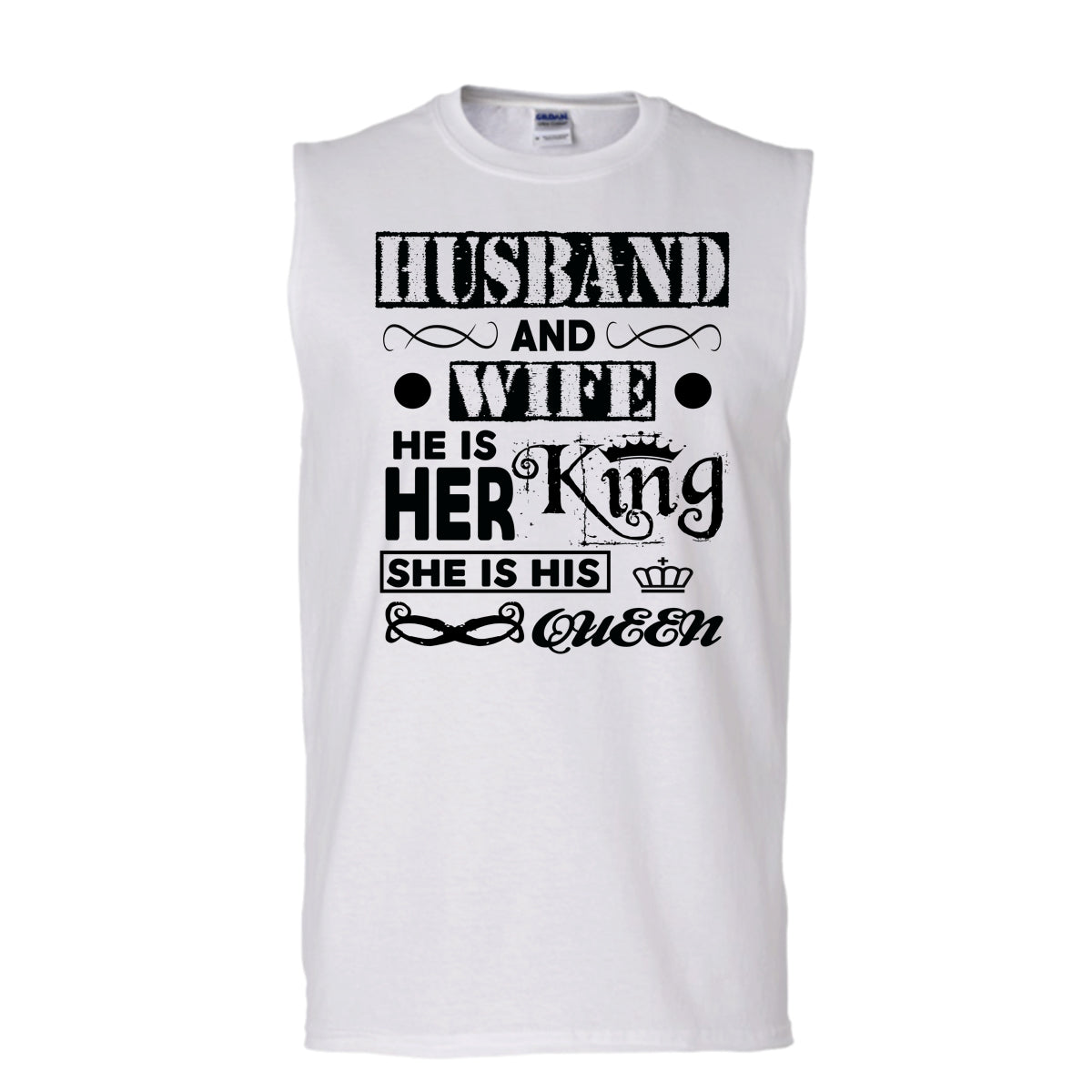 Husband And Wife T Shirt, She Is His Queen T Shirt, Awesome t-shirts (Men's Cotton Sleeveless)