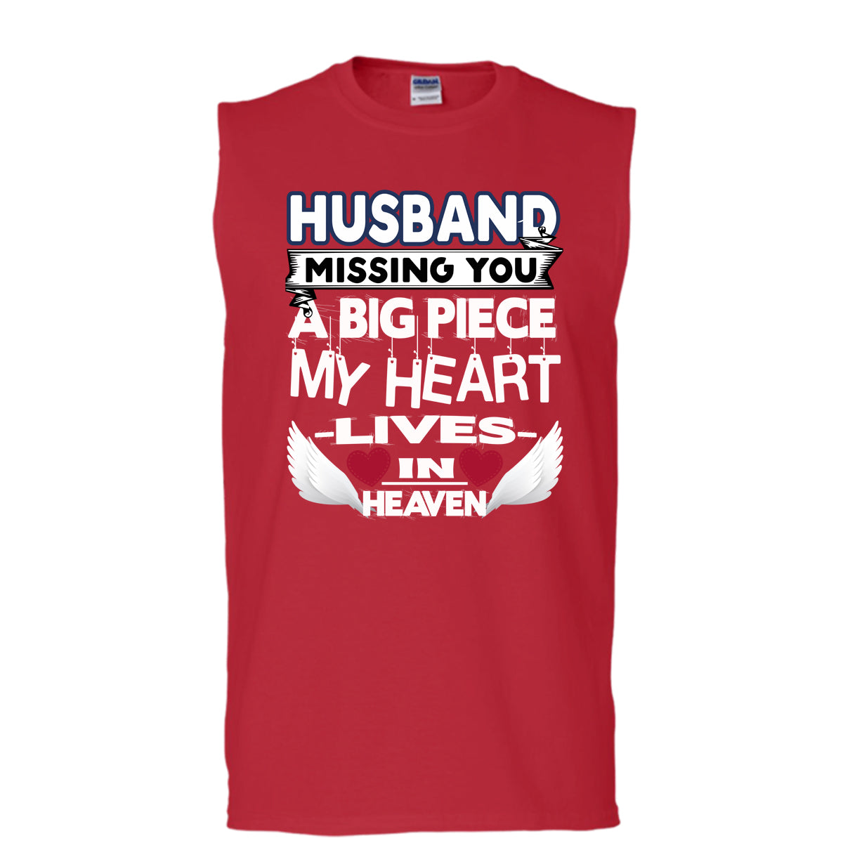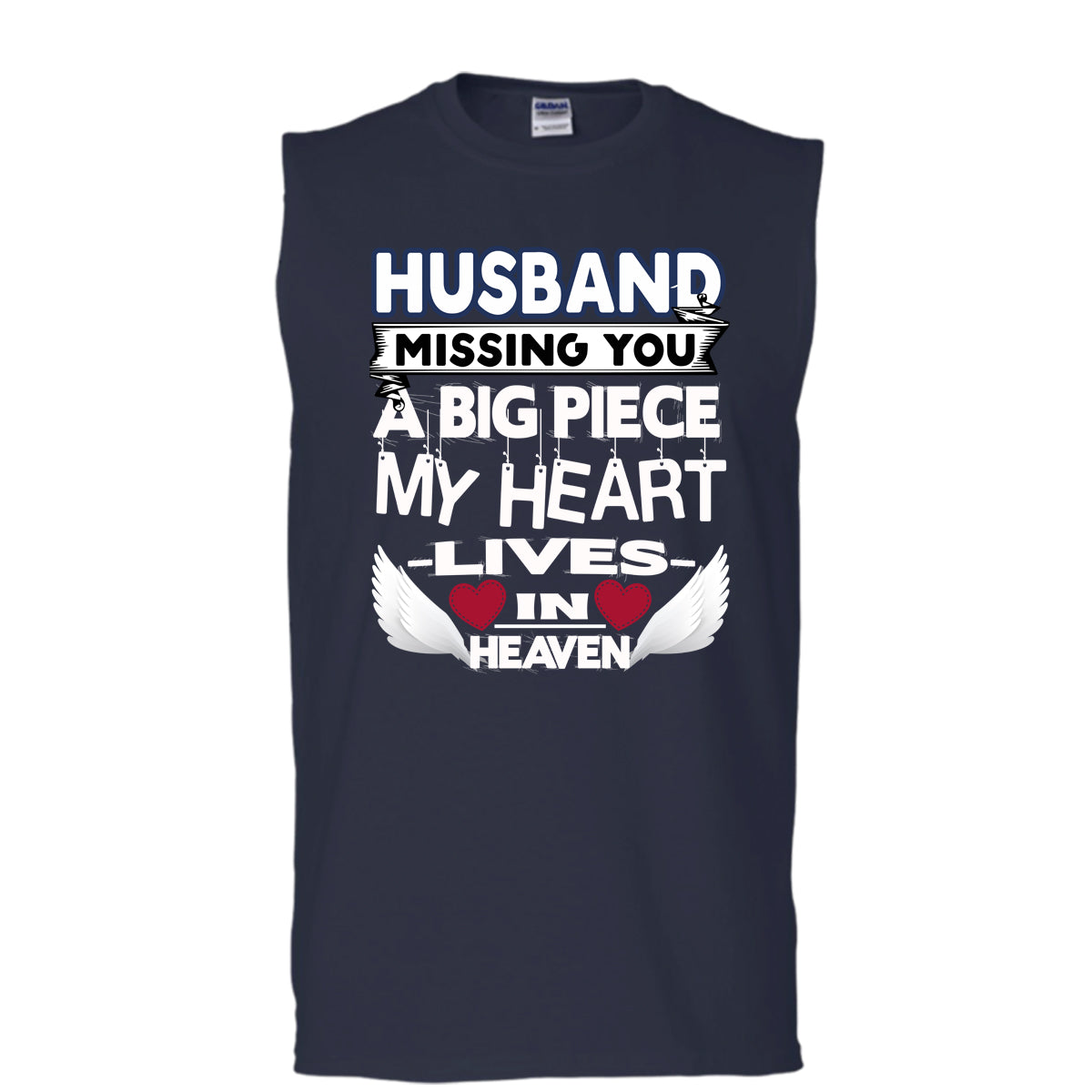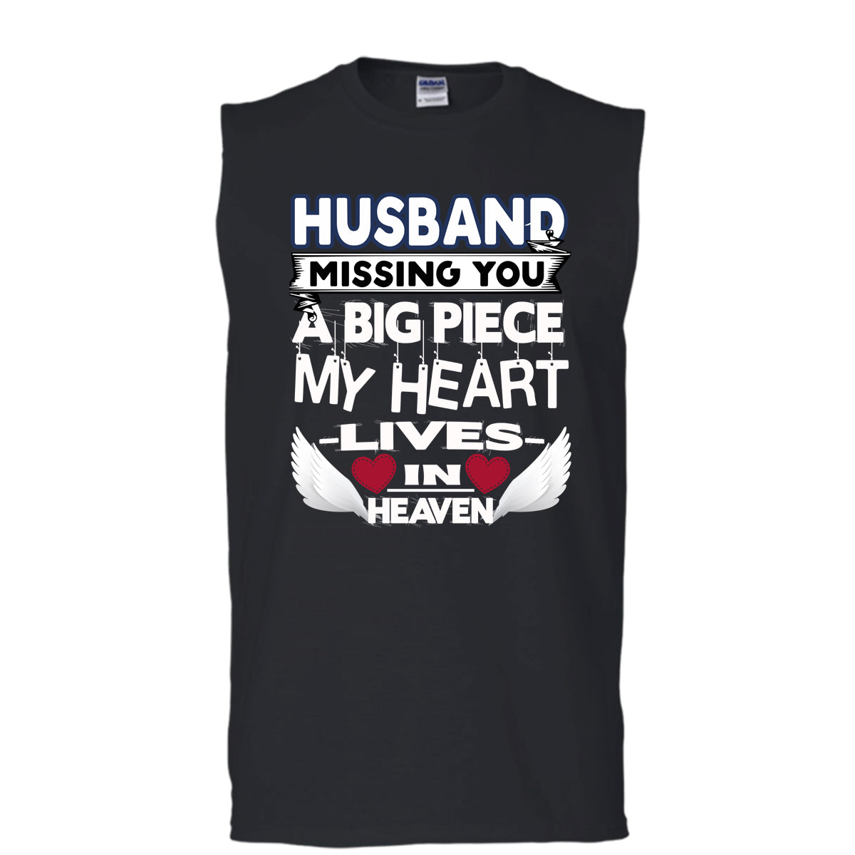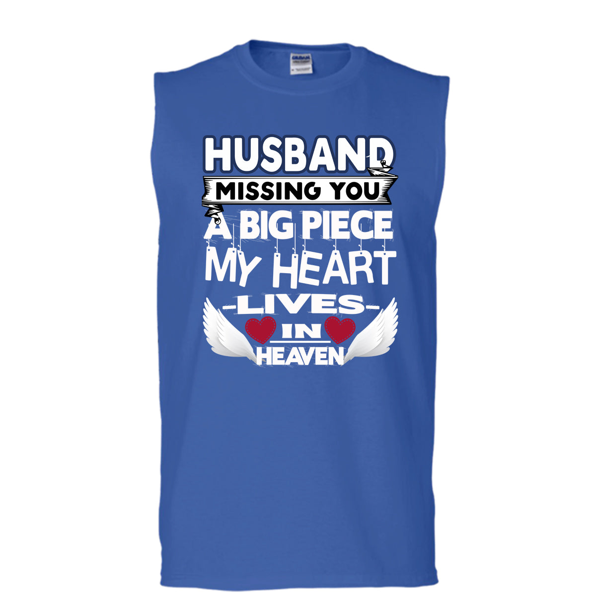 Husband Missing You T Shirt, A Big Piece My Heart Lives In Heaven T Shirt, Cool T Shirt (Men's Cotton Sleeveless)