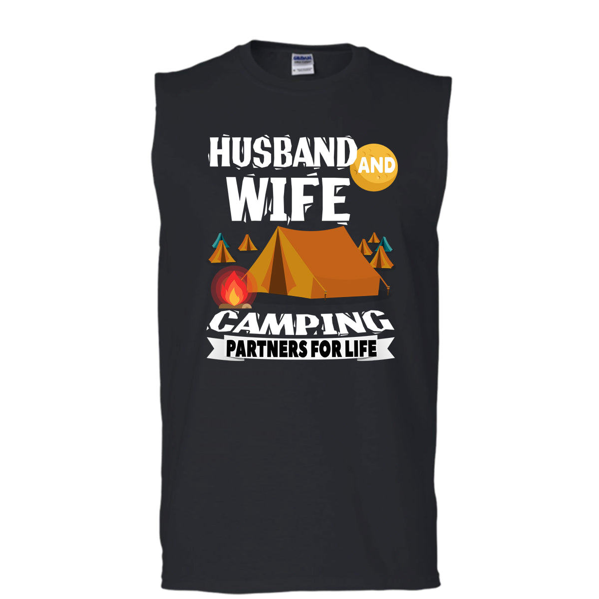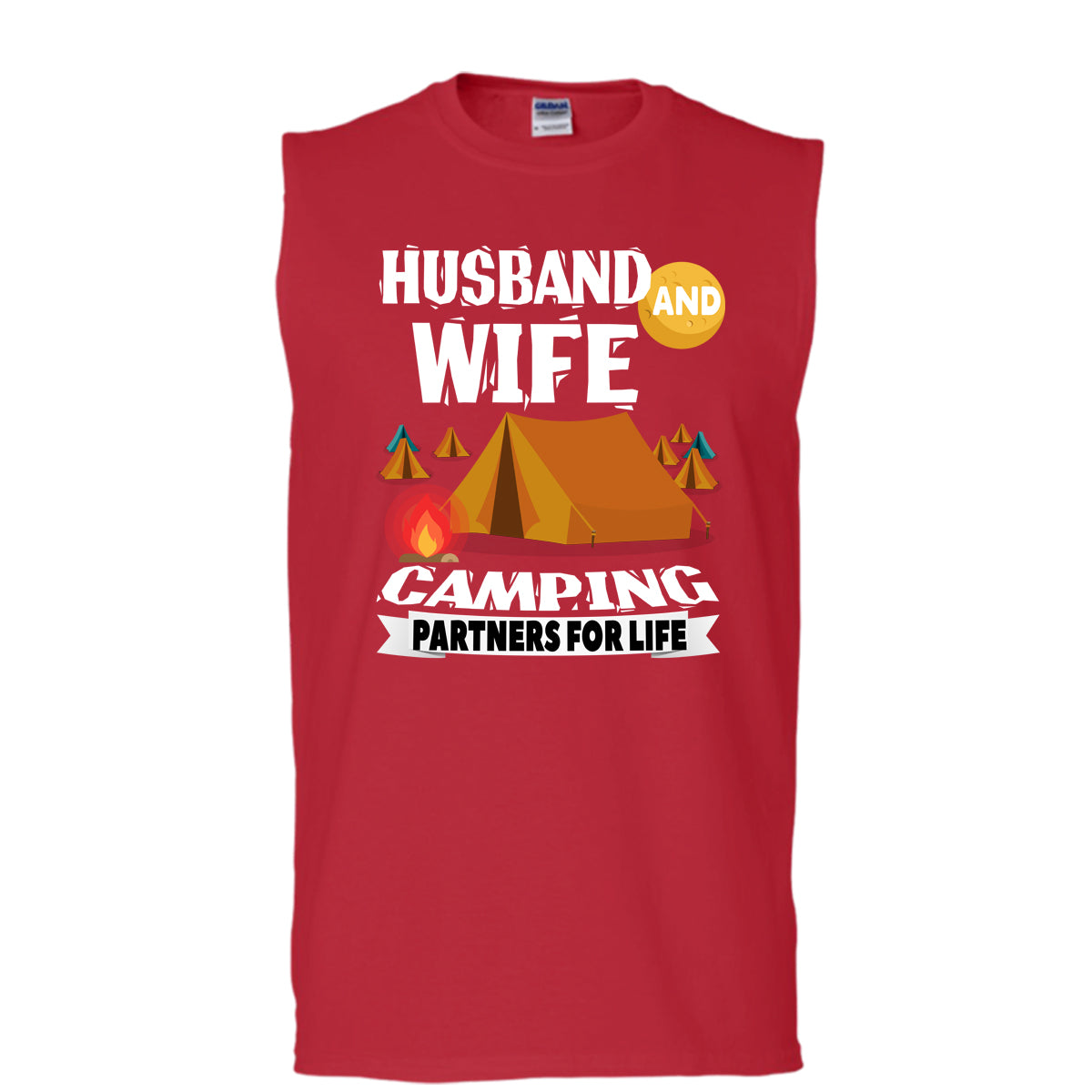 Husband & Wife T Shirt, Camping Partner For Life T Shirt, Cool T Shirt (Men's Cotton Sleeveless)