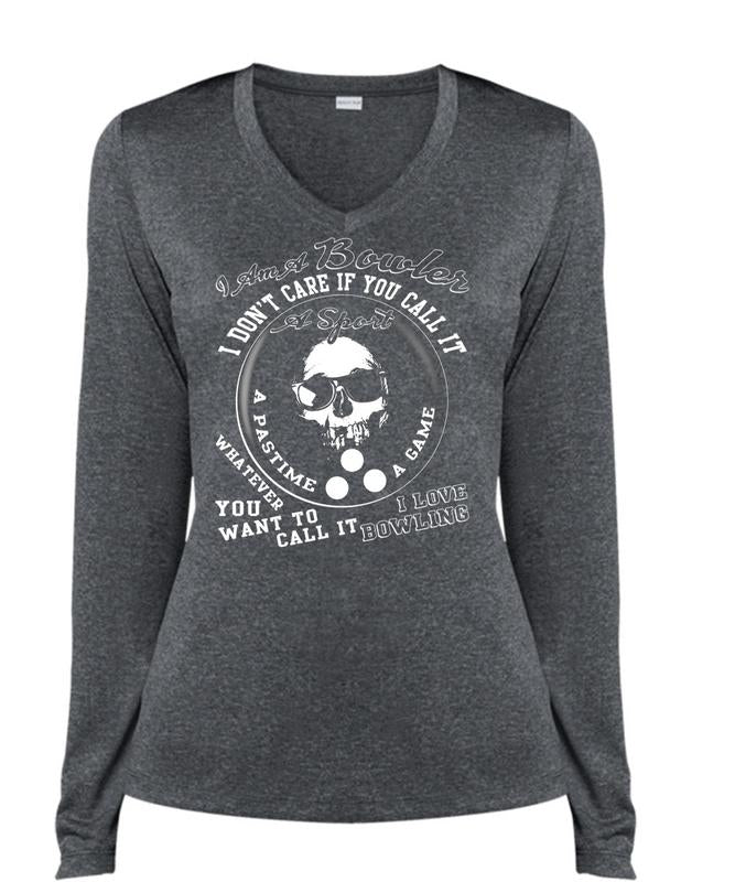 I Am A Bowler T Shirt, I Love Bowling T Shirt, Cool Shirt (Ladies LS Heather V-Neck)