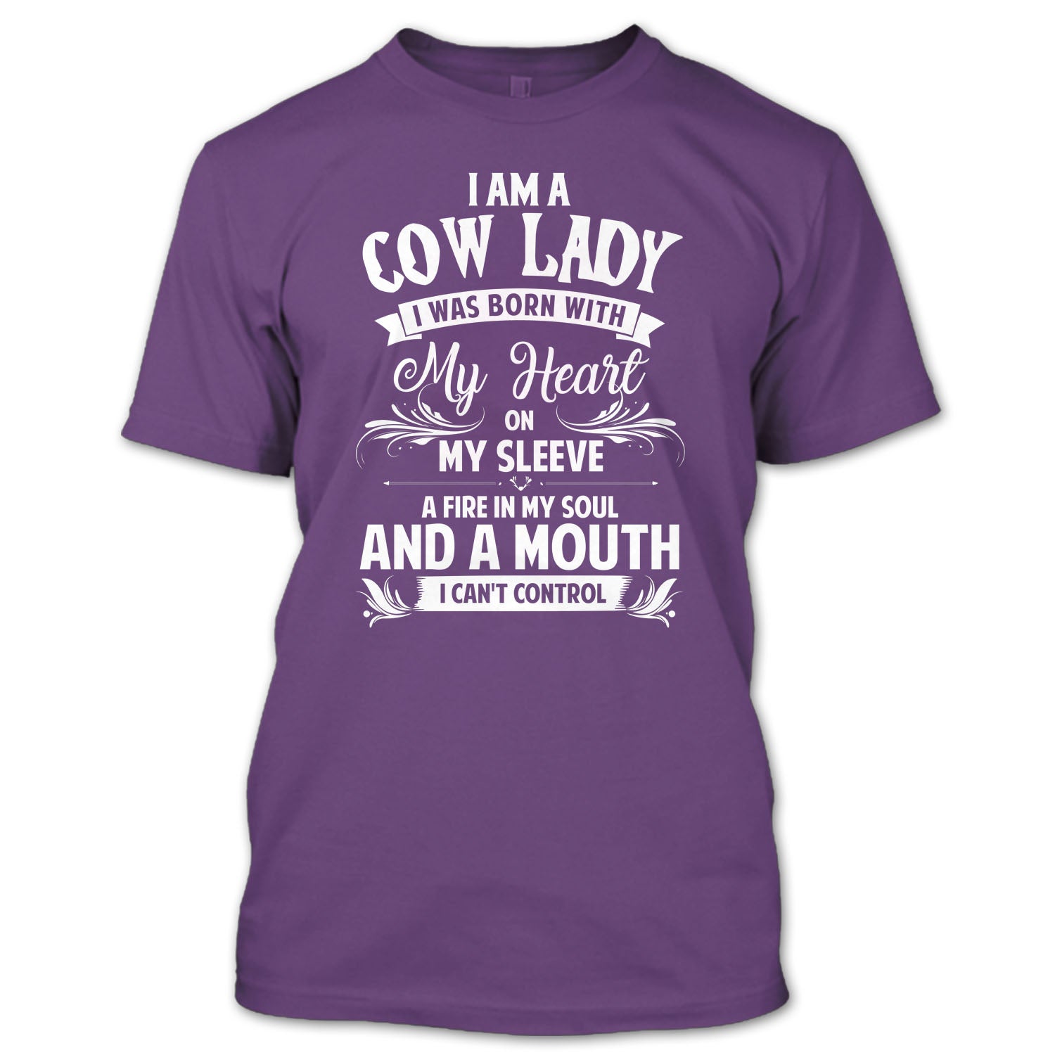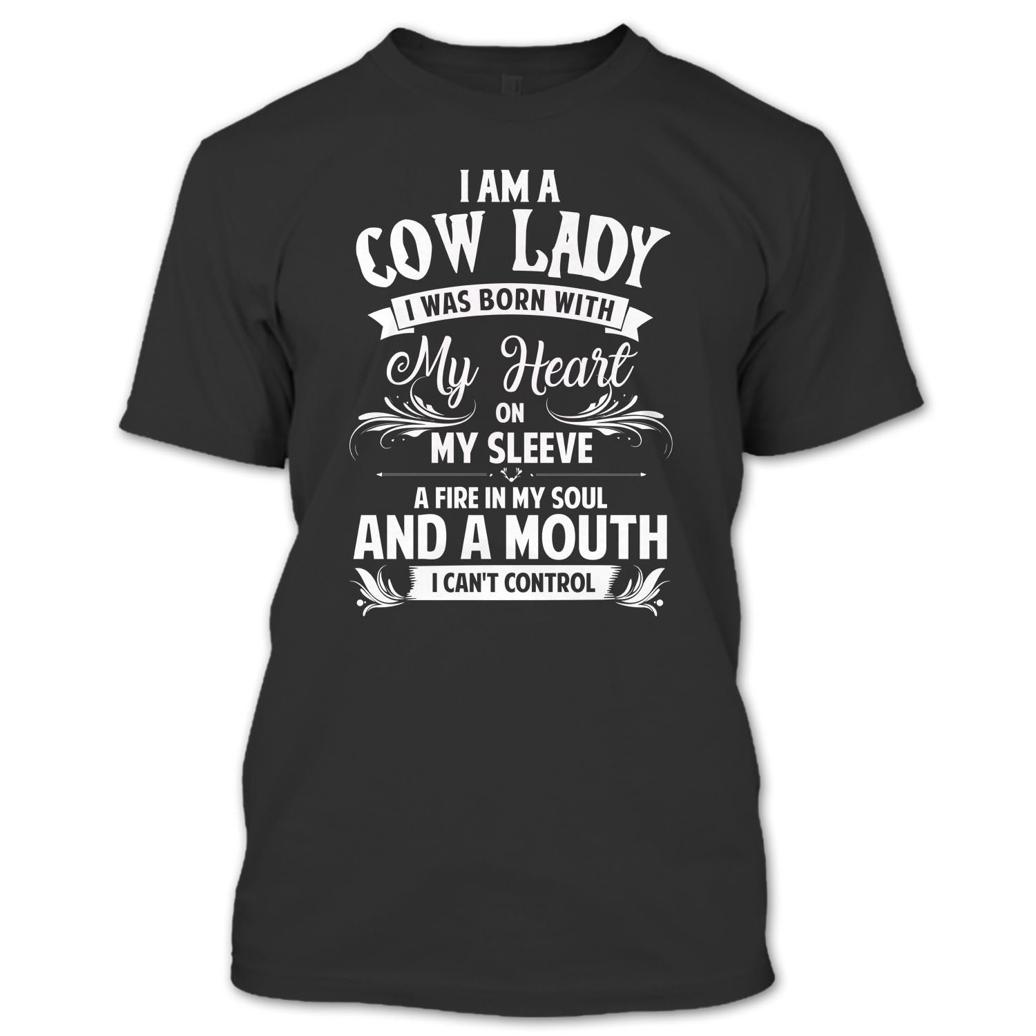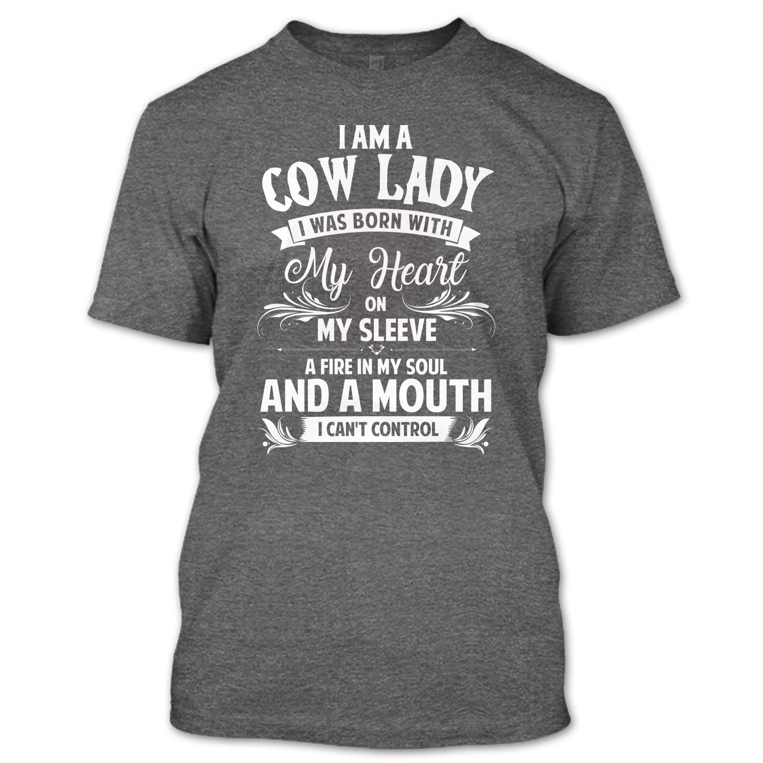 I Am A Cow Lady T Shirt, I Was Born With My Heart On My Sleeve T Shirt