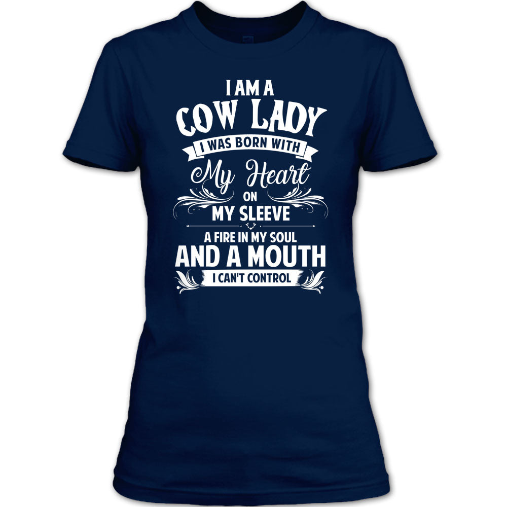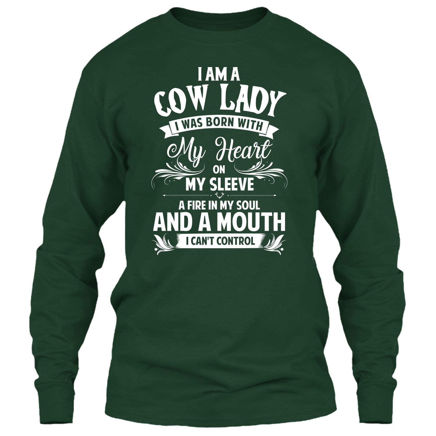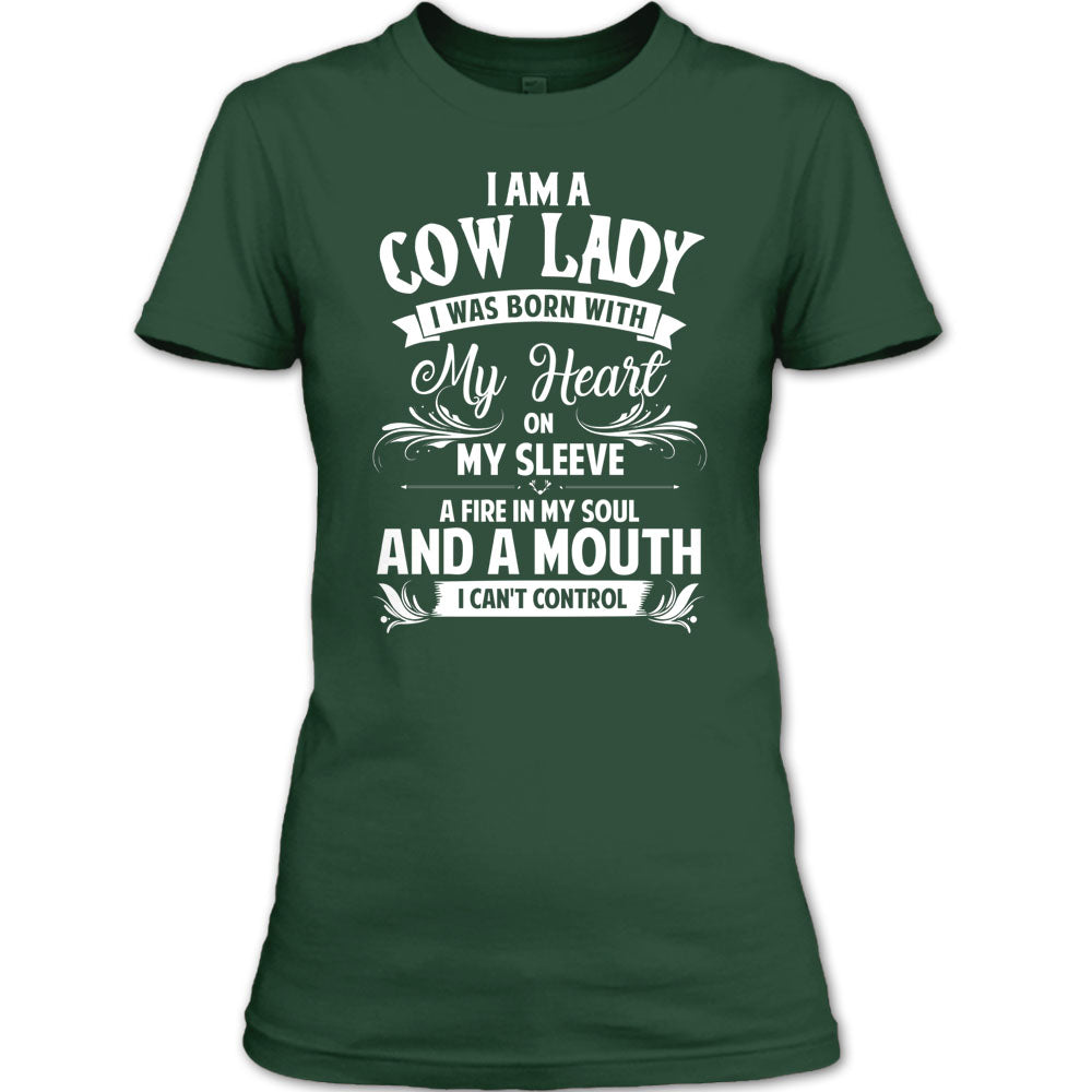 I Am A Cow Lady T Shirt, I Was Born With My Heart On My Sleeve T Shirt