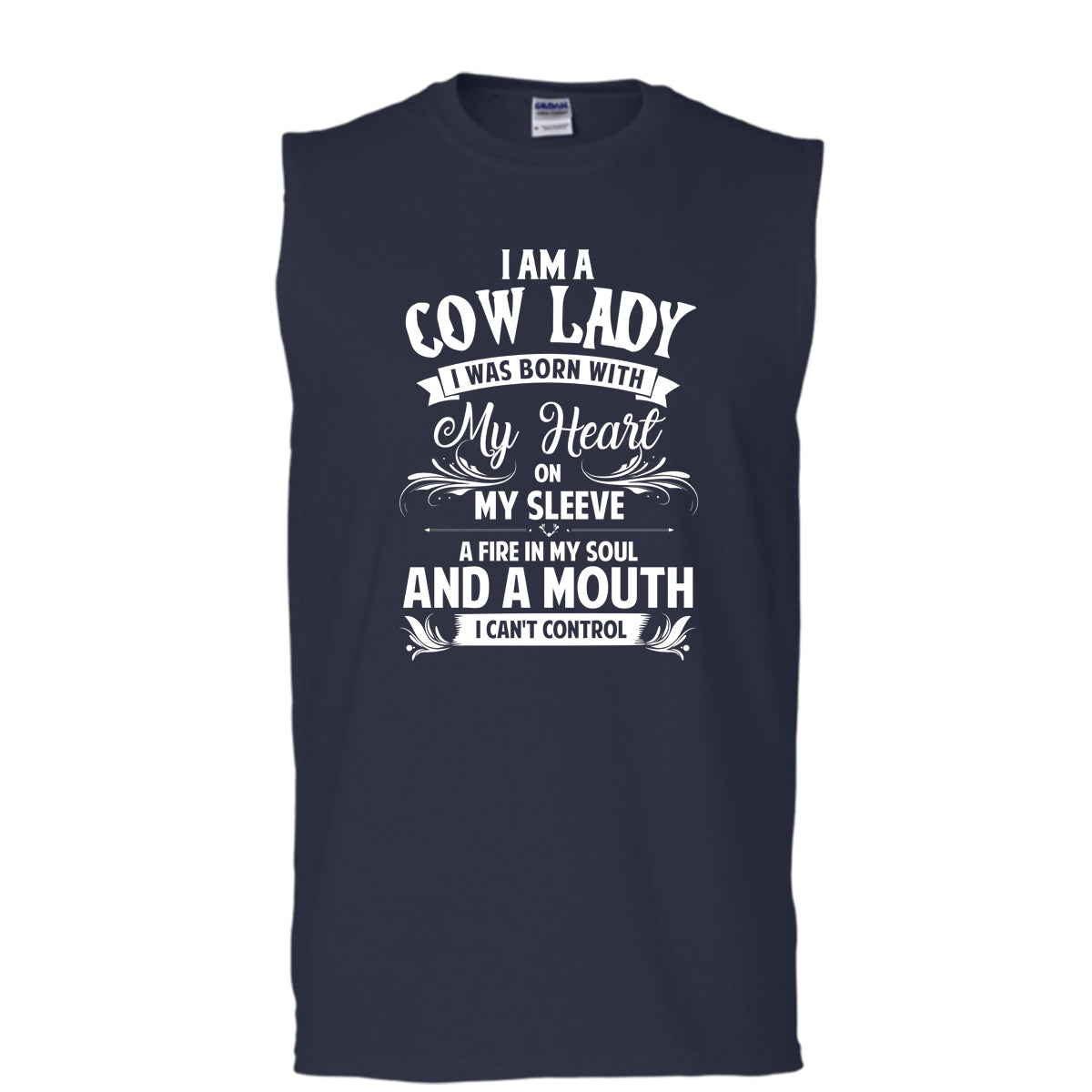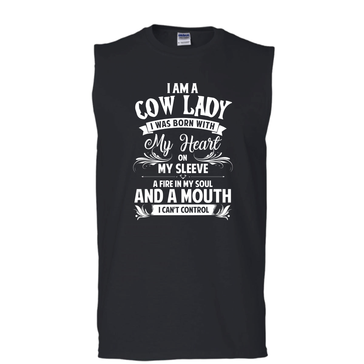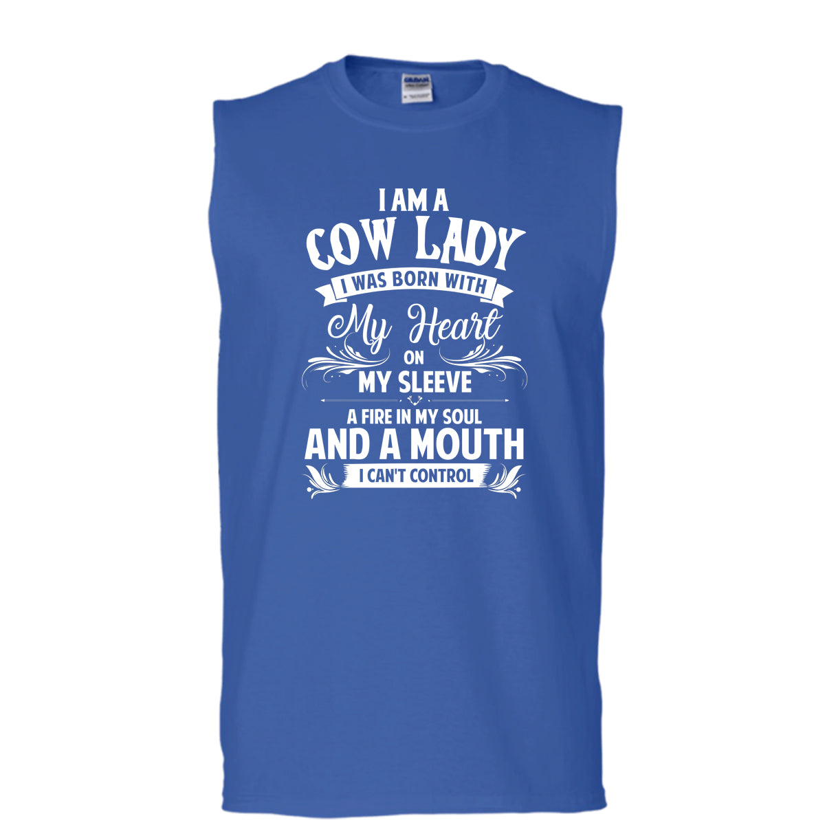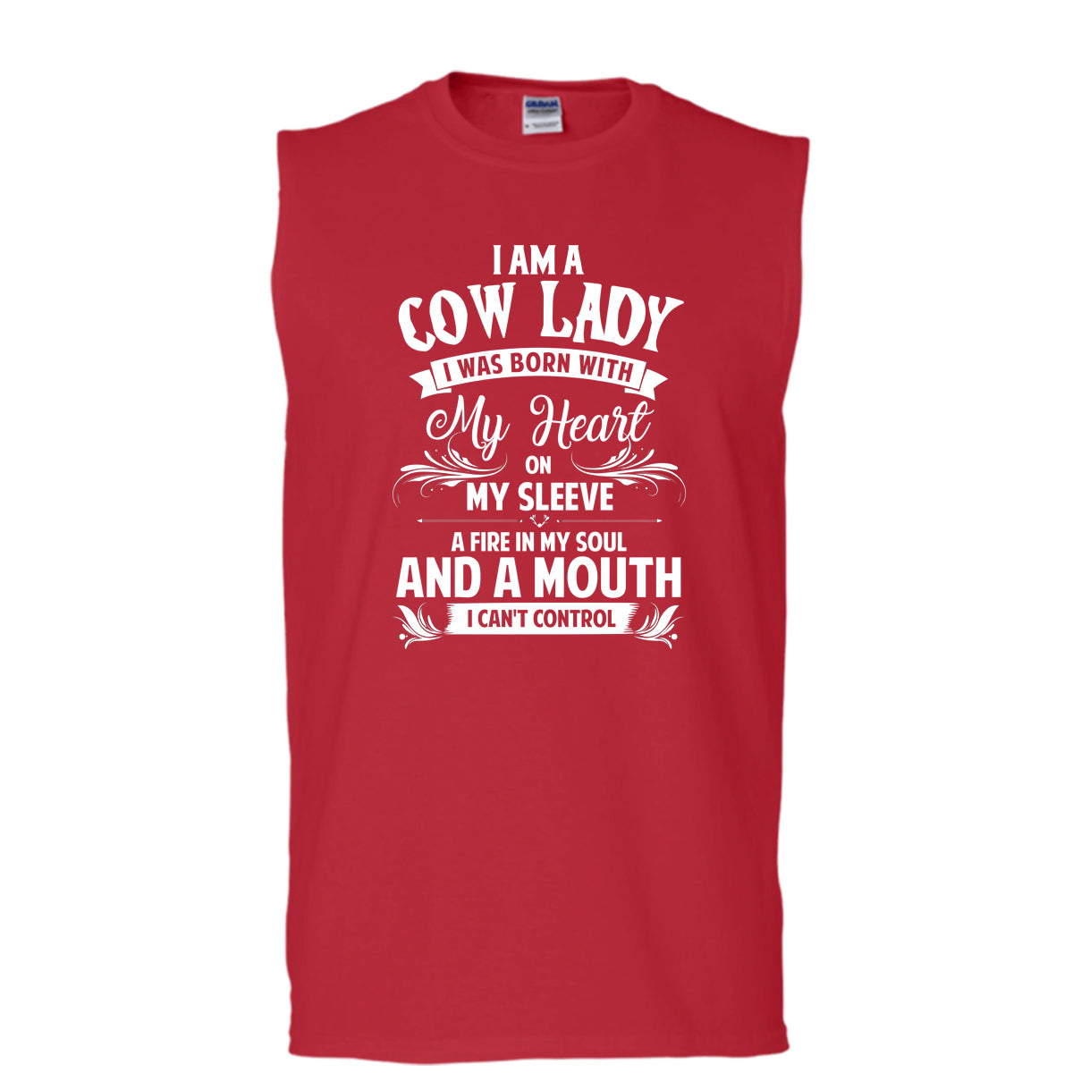 I Am A Cow Lady T Shirt, I Was Born With My Heart On My Sleeve T Shirt, Cool T Shirt (Men's Cotton Sleeveless)
