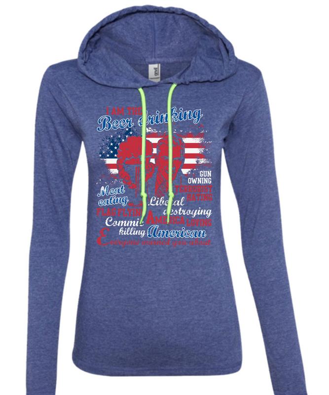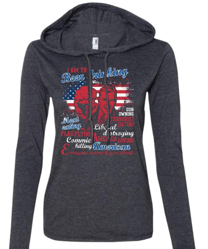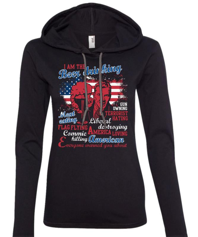 I Am The Beer Drinking T Shirt, Loving American T Shirt (Anvil Ladies Ringspun Hooded)