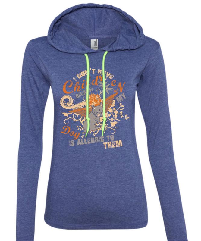 I Don't Have Children T Shirt, My Dog Is Allergic To Them T Shirt (Anvil Ladies Ringspun Hooded)