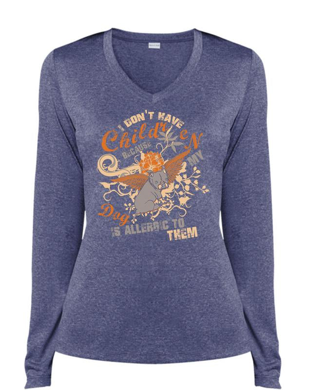 I Don't Have Children T Shirt, My Dog Is Allergic To Them T Shirt, Cool Shirt (Ladies LS Heather V-Neck)