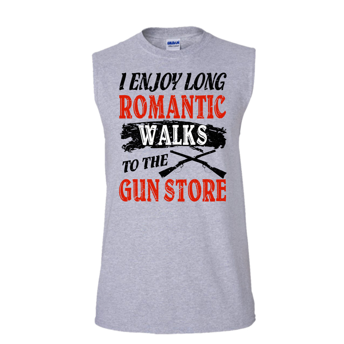I Enjoy Long Romantic Walks T Shirt, Coolest Hunter T Shirt, Awesome t-shirts (Men's Cotton Sleeveless)