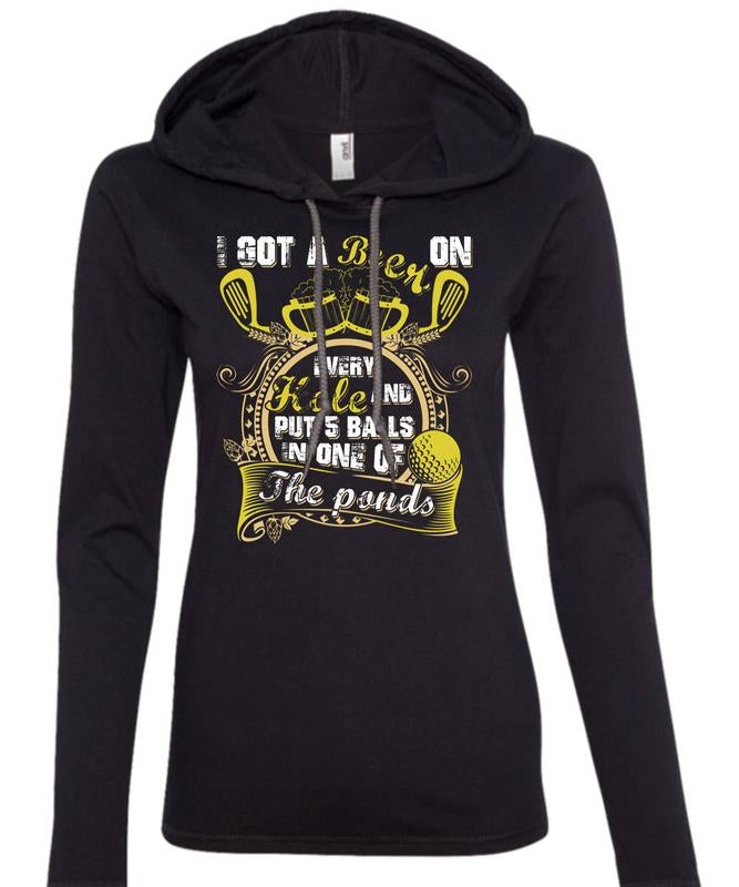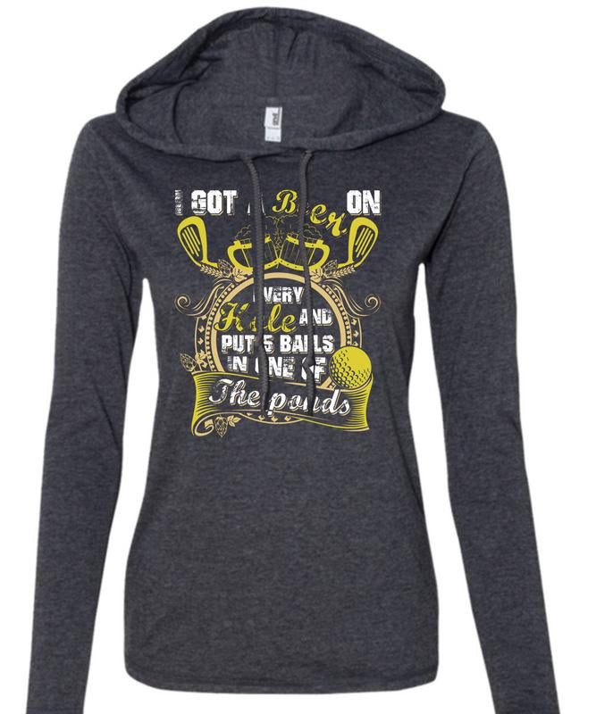 I Got A Beer On Every Hole T Shirt, I Love Drinking T Shirt (Anvil Ladies Ringspun Hooded)