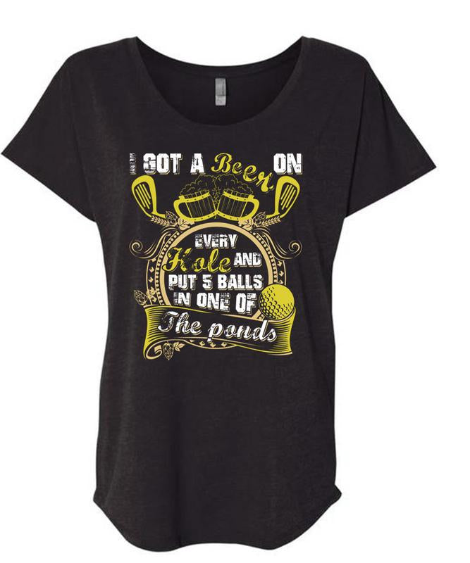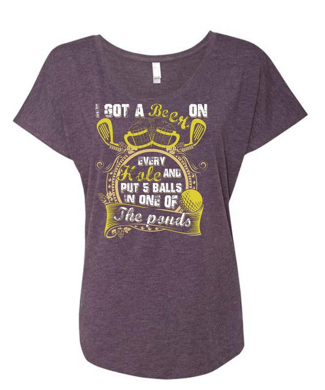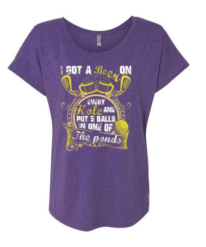 I Got A Beer On Every Hole T Shirt, I Love Drinking T Shirt, Cool Shirt (Ladies' Triblend Dolman Sleeve)