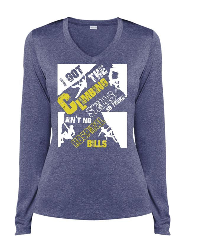 I Got The Climbing Skills T Shirt, I Love Climbing T Shirt, Cool Shirt (Ladies LS Heather V-Neck)